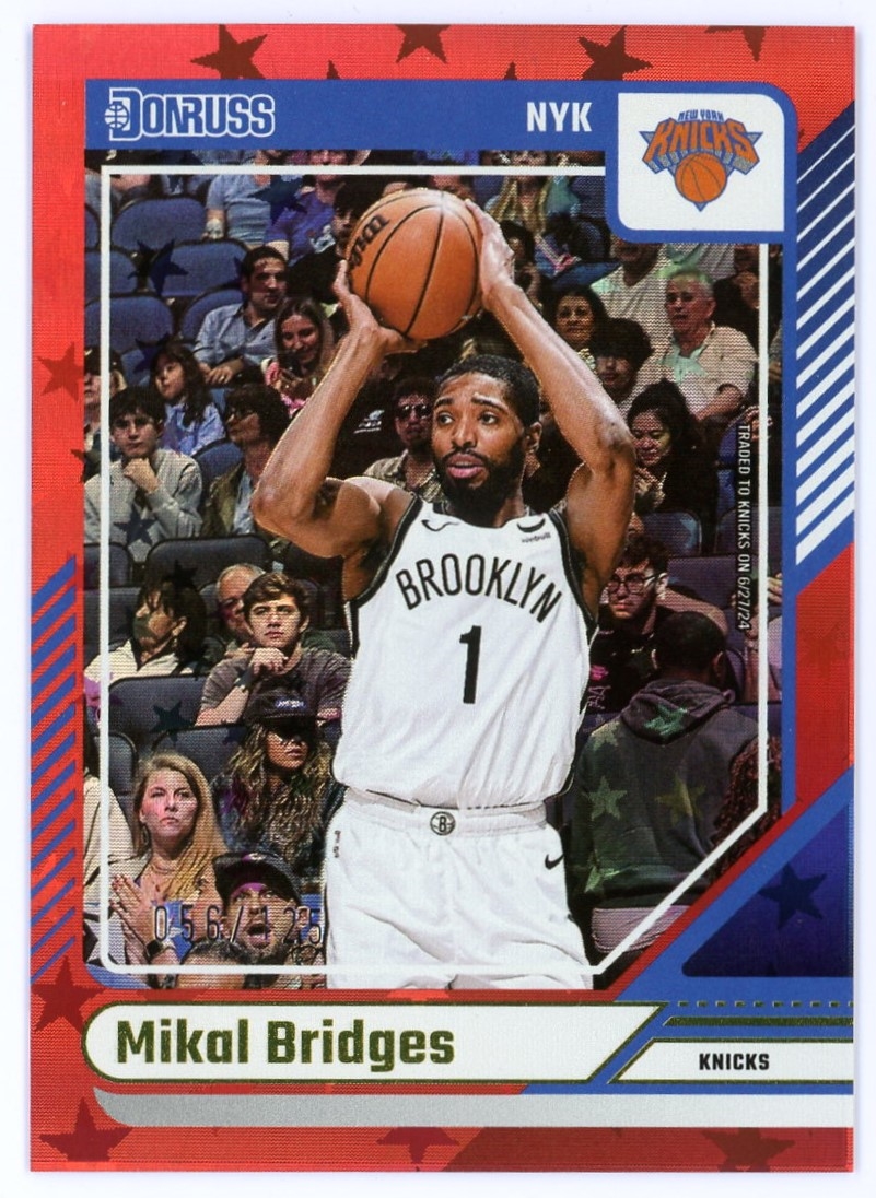 2024-25 Panini Donruss Mikal Bridges 米卡尔 布里奇斯 056/125编 杜蕾斯 红星星 折射 纽约尼克斯 大桥 传奇 耐上场王 002