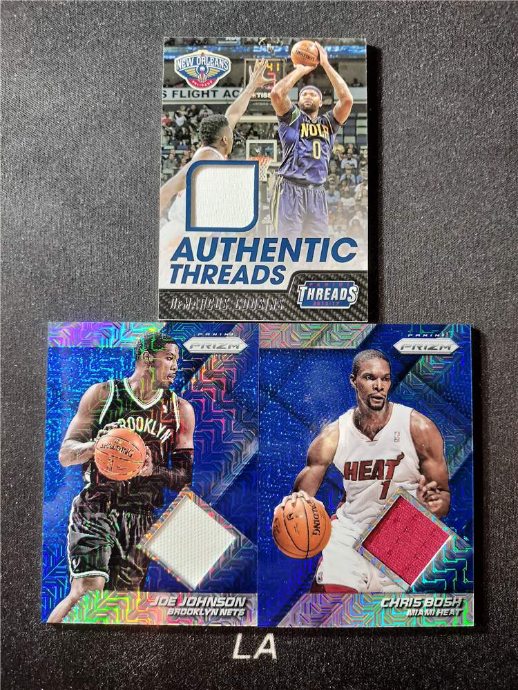 【LA拍卖】2016-17 Panini 小背心 Prizm 德马库斯 考辛斯 乔 约翰逊 克里斯 波什 蓝MOJO折 GU球衣 3张打包 瑕疵如图 I03B