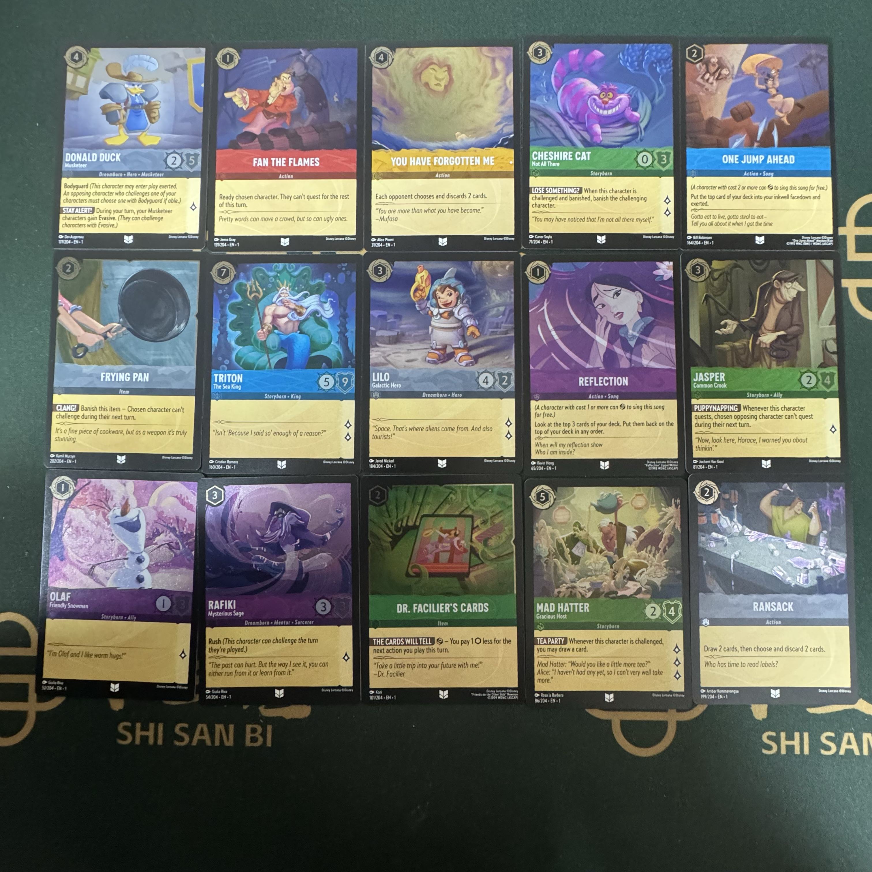 【十三笔】DISNEY LORCANA 迪士尼 洛卡纳 美版 第一弹 U闪 唐老鸭 微笑猫 神秘猫 奥拉夫 特莱顿国王 莉萝 打包15张 卡品如图(YY)1
