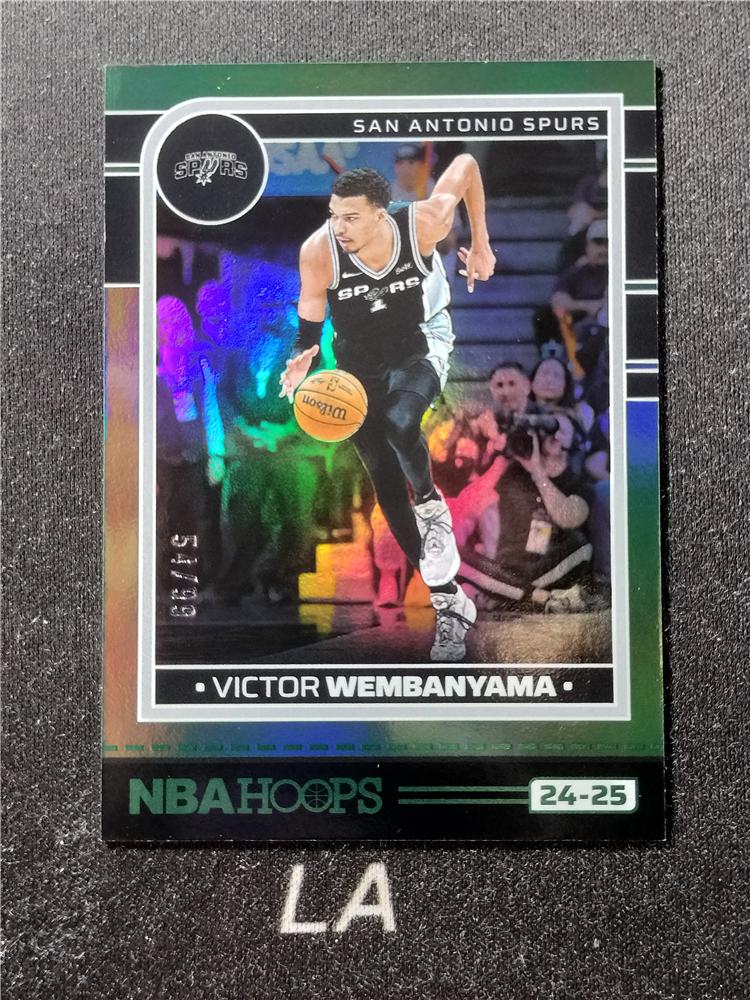 【LA拍卖】2024-25 Panini Hoops Victor Wembanyama 维克托 文班亚马 马刺状元秀 天赋怪兽 独角兽 盖帽王 新秀一阵 未来可期 绿折 base /99编 X53B