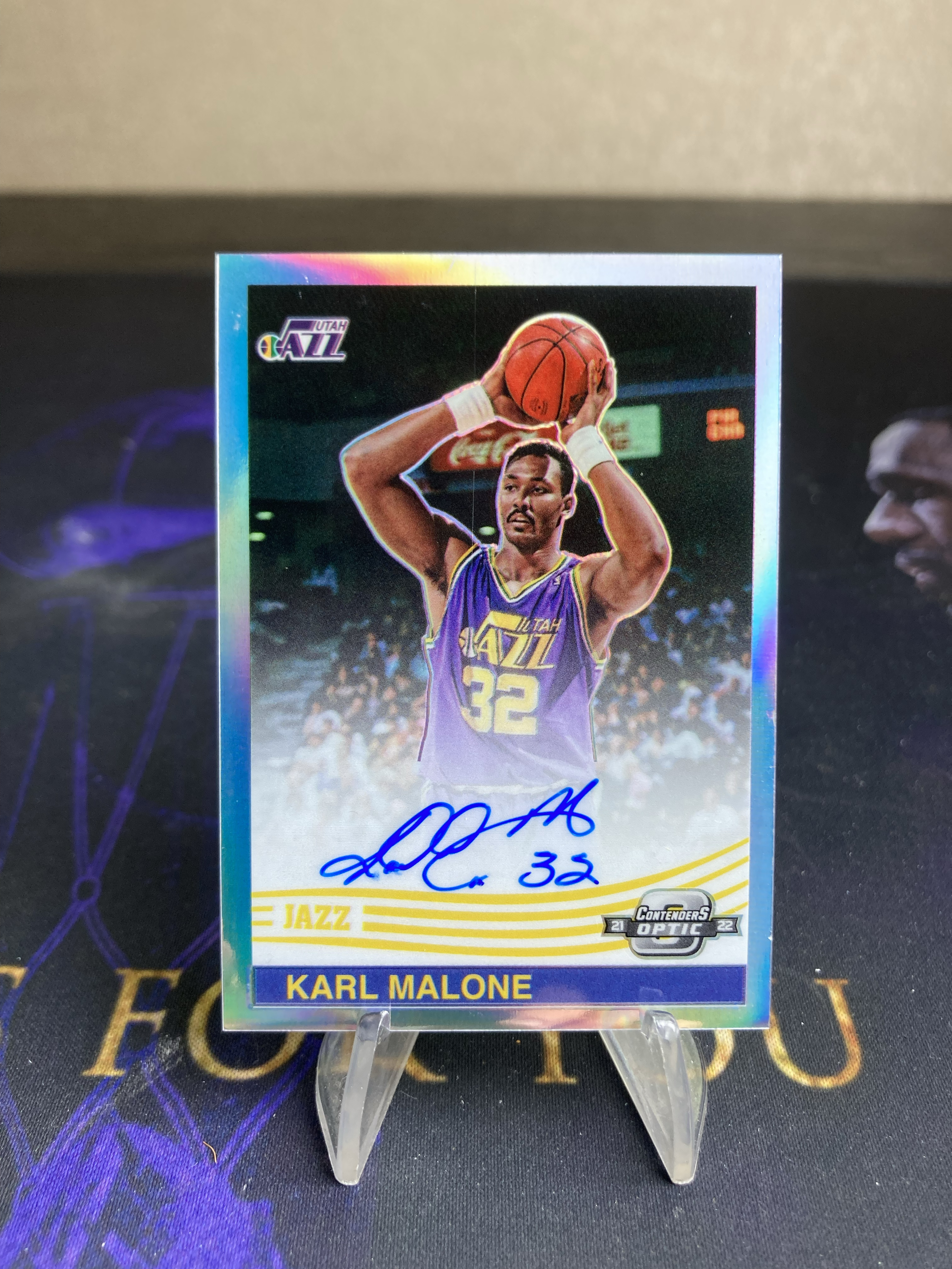 2021-22 Panini Contenders Optic Karl Malone 【星卡优转】球票OP系列 爵士 邮差 卡尔 马龙 签字 卡签 银折 专收必备 微瑕如图 荣
