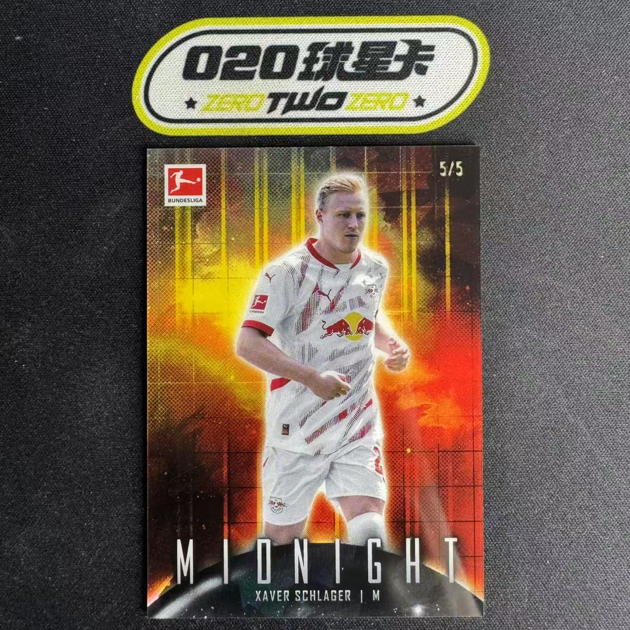 2024-25 Topps Midnight Xaver Schlager 德甲午夜 施拉格尔 5/5编 尾编 橙碎冰折 莱比锡红牛(zsm)