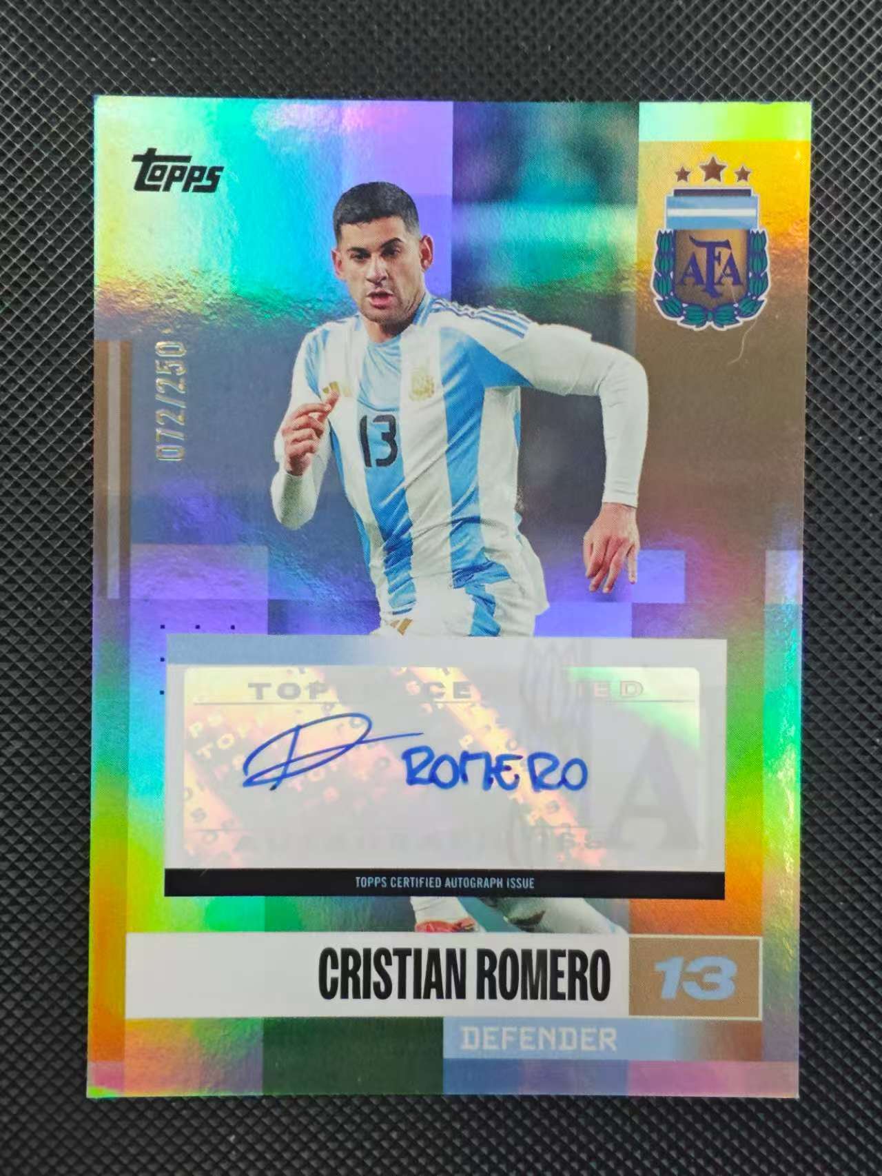 2023-24 Topps 阿根廷队盒 Cristian Romero 克里斯蒂安 罗梅罗 250编 签字 银折 折射 base 特卡 0518Q先生