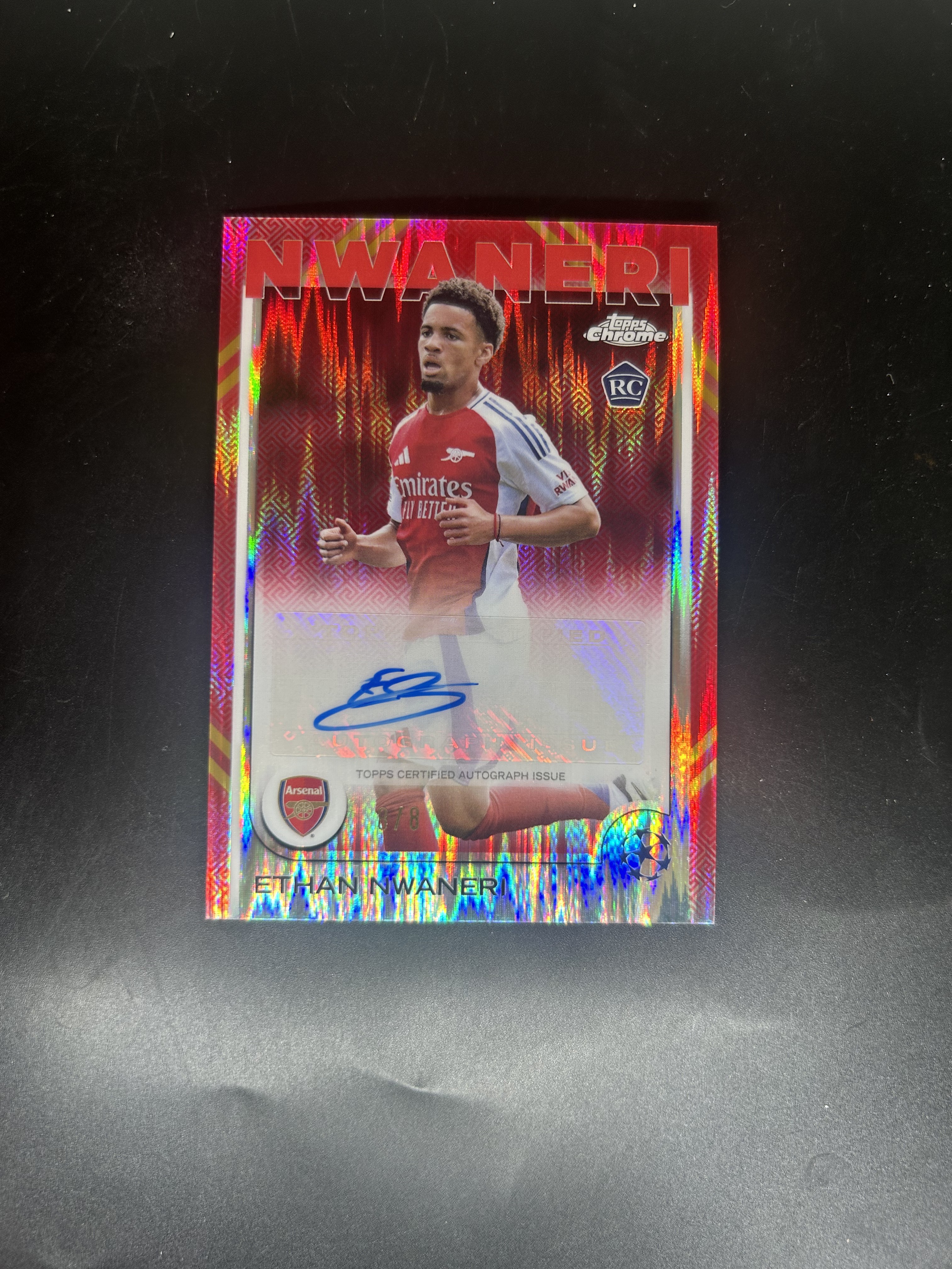 虫虫飞 2025 Topps Chrome Ethan Nwaneri RC 欧冠TC系列 恩瓦内里 8/8编 尾编 超低编 红瀑布 签字 完美签 RC新秀 阿森纳 英格兰 天才边锋 潜力无限 colour match 详情看描述