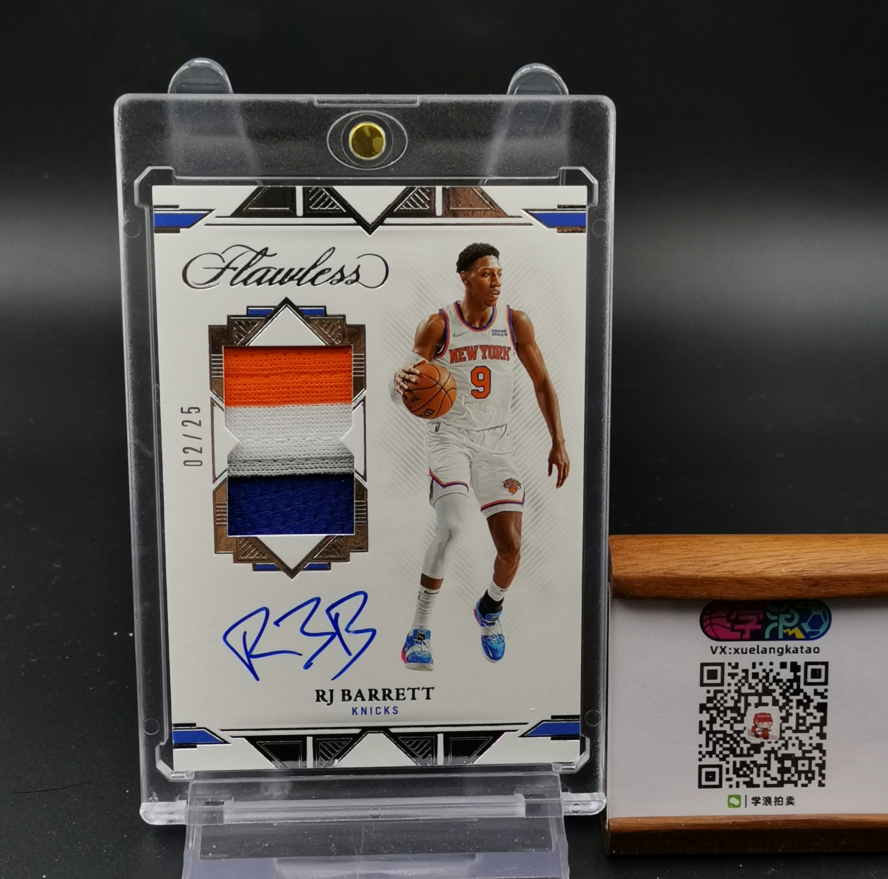 2021-22 Panini Flawless R.J. Barrett 【学浪】手提系列 尼克斯 巴雷特 四色球衣切割 签字 卡签 02/25编 银平行 PA 印痕如图 投资收藏必备 柠檬