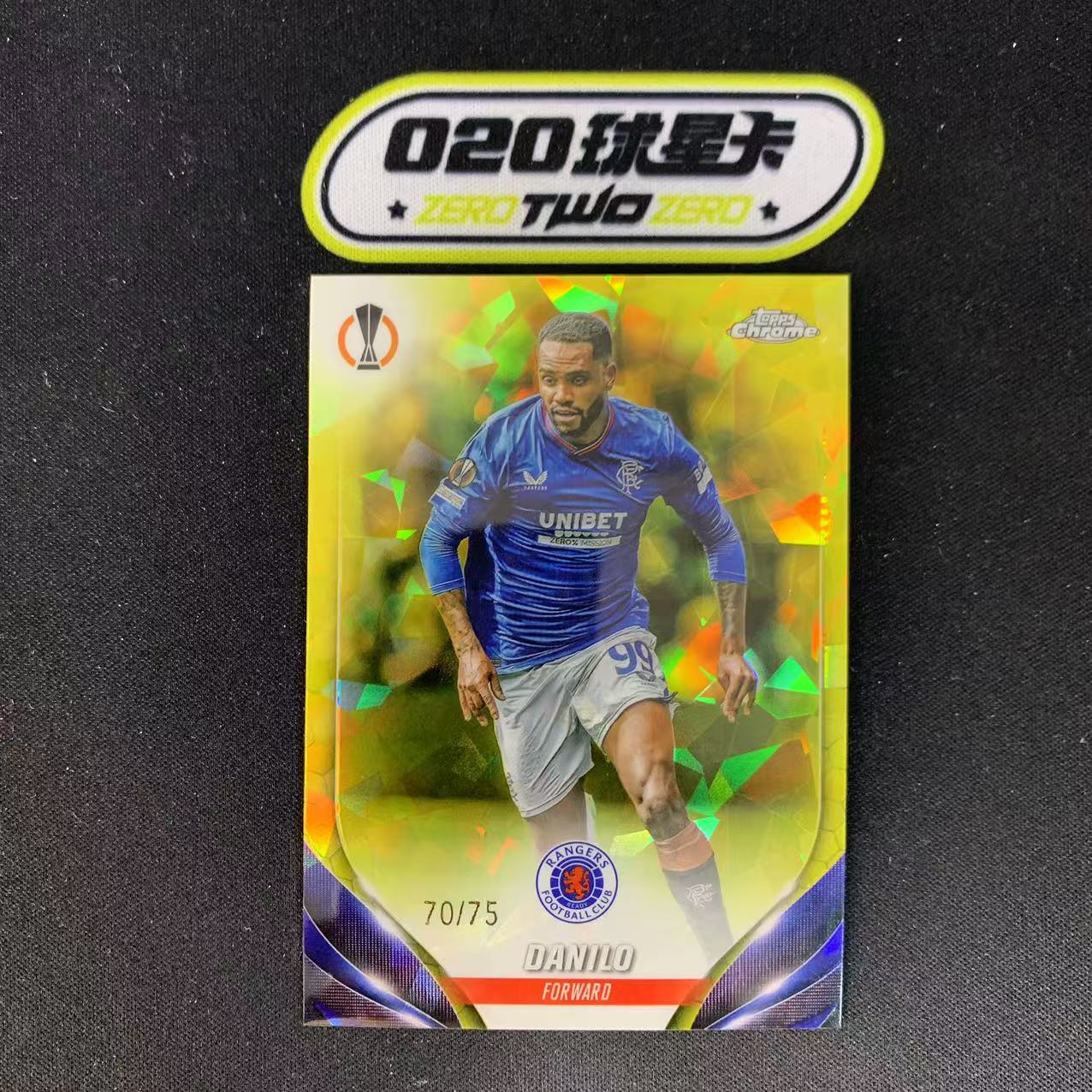 2023-24 Topps Chrome Danilo 欧冠蓝宝石 达尼洛 70/75编 黄碎冰折 流浪者 收藏必备(GZ01)