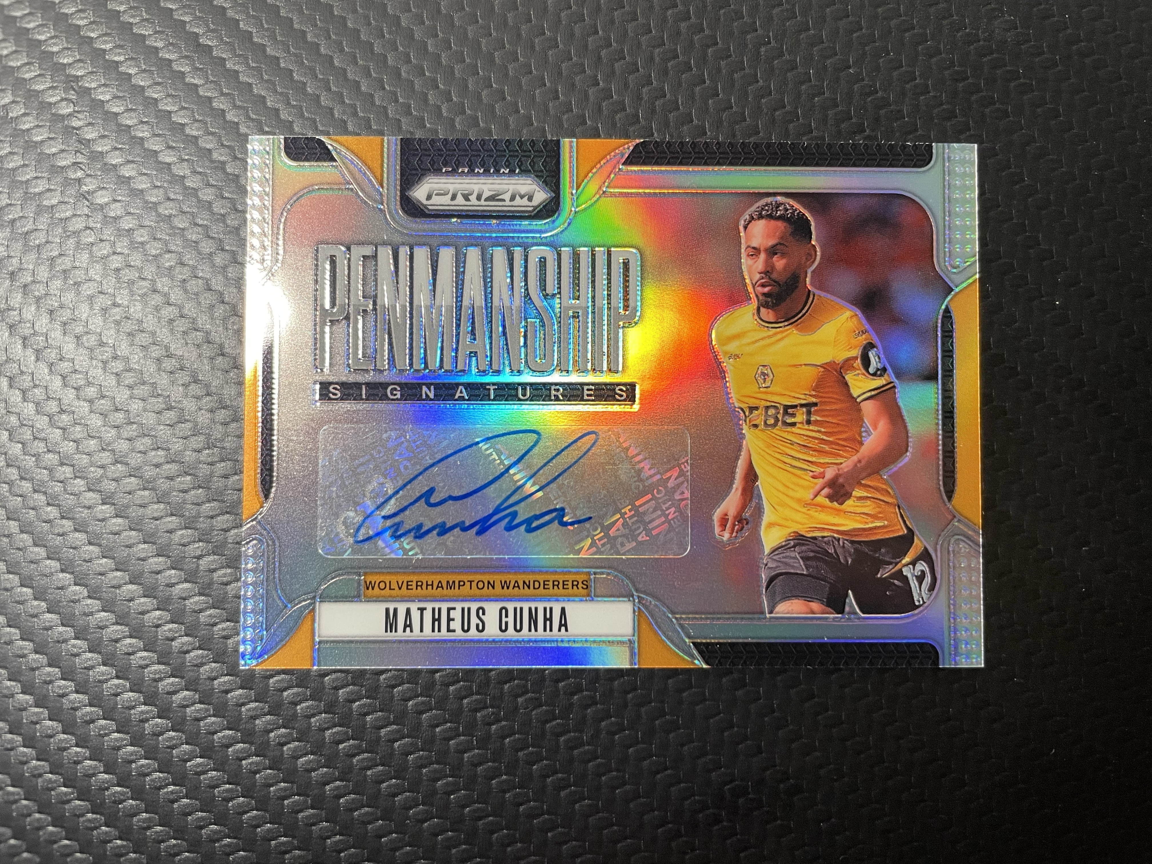 2024-25 Panini Prizm Matheus Cunha 英超 PZ 狼队 库尼亚 签字 /99编 银折 Penmanship 签名卡 折射 曼联猎物 投资收藏 卡品如图