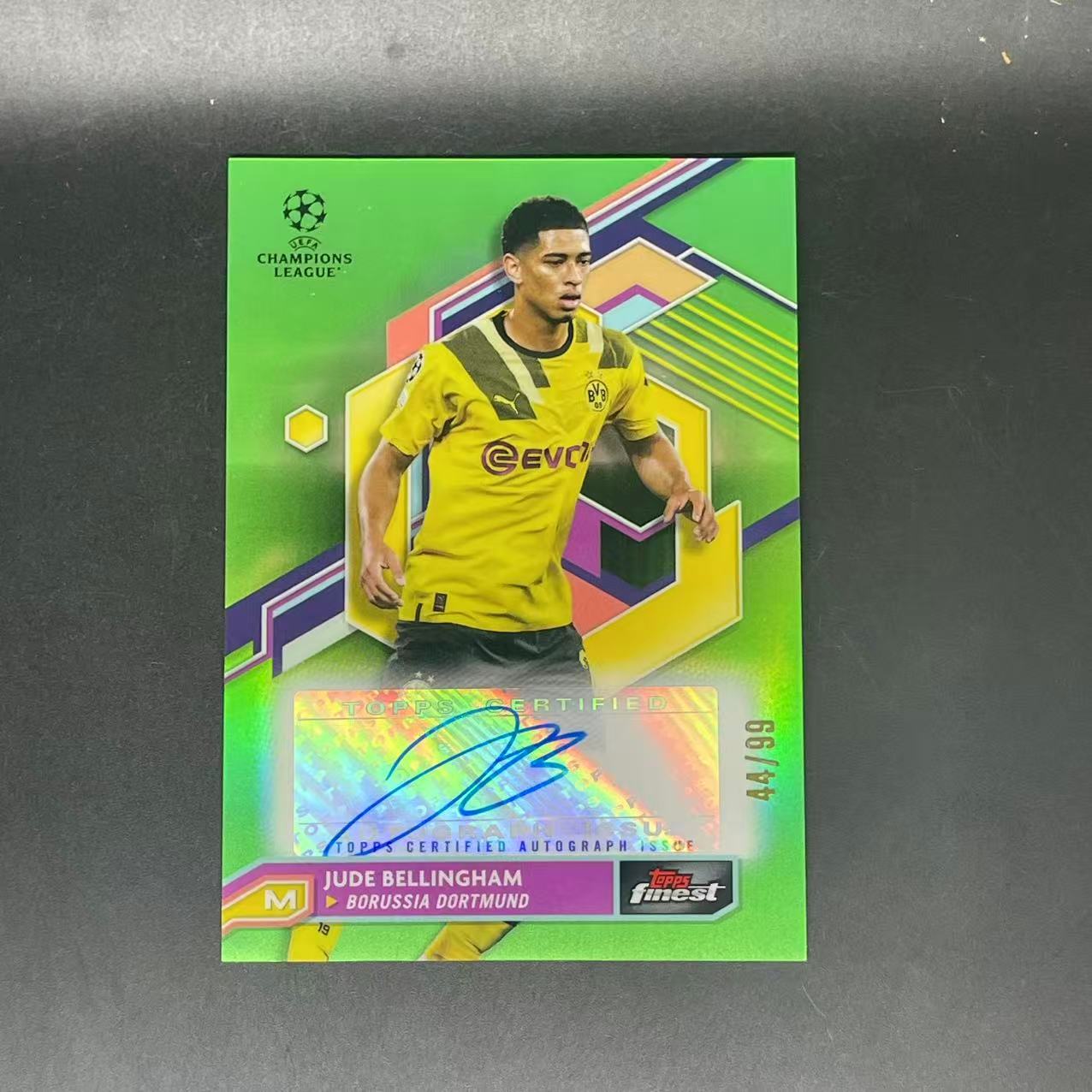 2023 Topps Finest Jude Bellingham 欧冠 多特蒙德 贝林厄姆 绿折 绿波纹折签字 /99编 极具收藏价值 未来必涨 (MM)