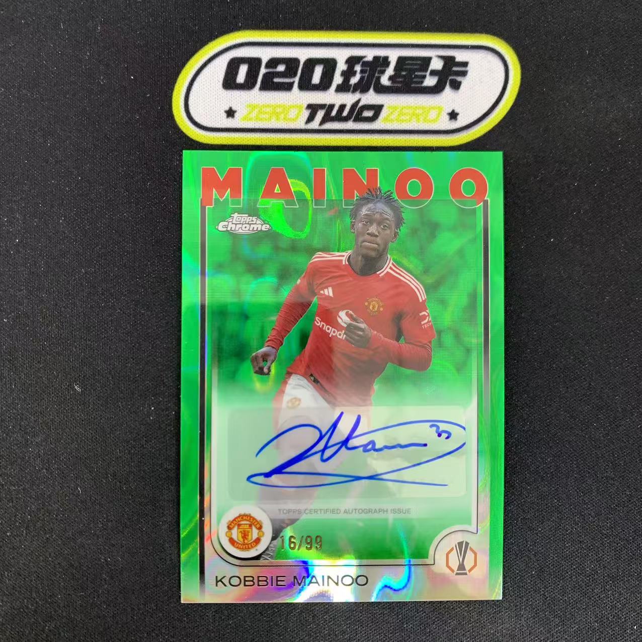 2024-25 Topps Chrome Kobbie Mainoo 欧冠TC 科比 梅努 16/99编 绿熔岩折 签字 曼联 英格兰 复兴基石 微瑕如图 收藏必备(GZ01)