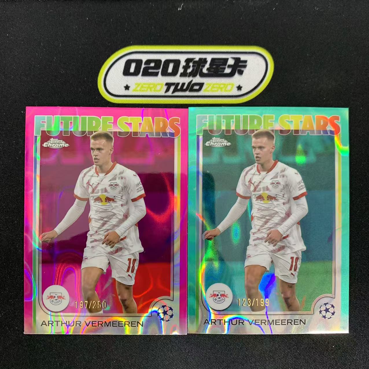 2024-25 Topps Chrome Vermeeren 欧冠TC 莱比锡红牛 费尔梅伦 未来之星 199编 250编 青熔岩折 粉熔岩折 莱比锡红牛 2张打包lot 卡品不保收藏必备(GZ01)