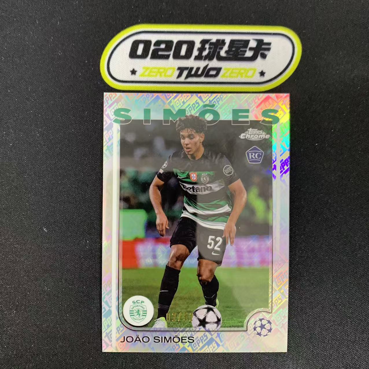 2024-25 Topps Chrome Joao Simoes 欧冠TC 葡萄牙体育 新秀RC 若昂 西蒙斯 2/52编 分母同背 大热新秀 未来可期 微瑕如图 收藏必备(GZ01)