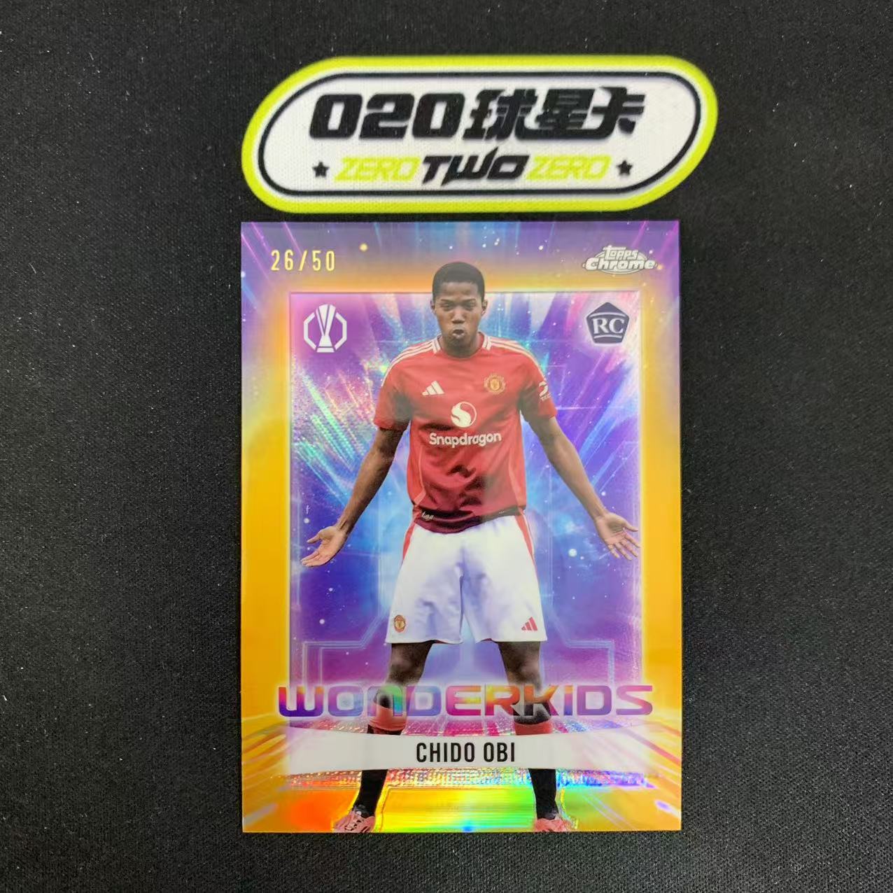 2024-25 Topps Chrome Chido Obi 欧冠TC 曼联 奥比 马丁 RC新秀 26/50编 金折 神奇小妖特卡 微瑕如图 投资收藏必备(kidd)