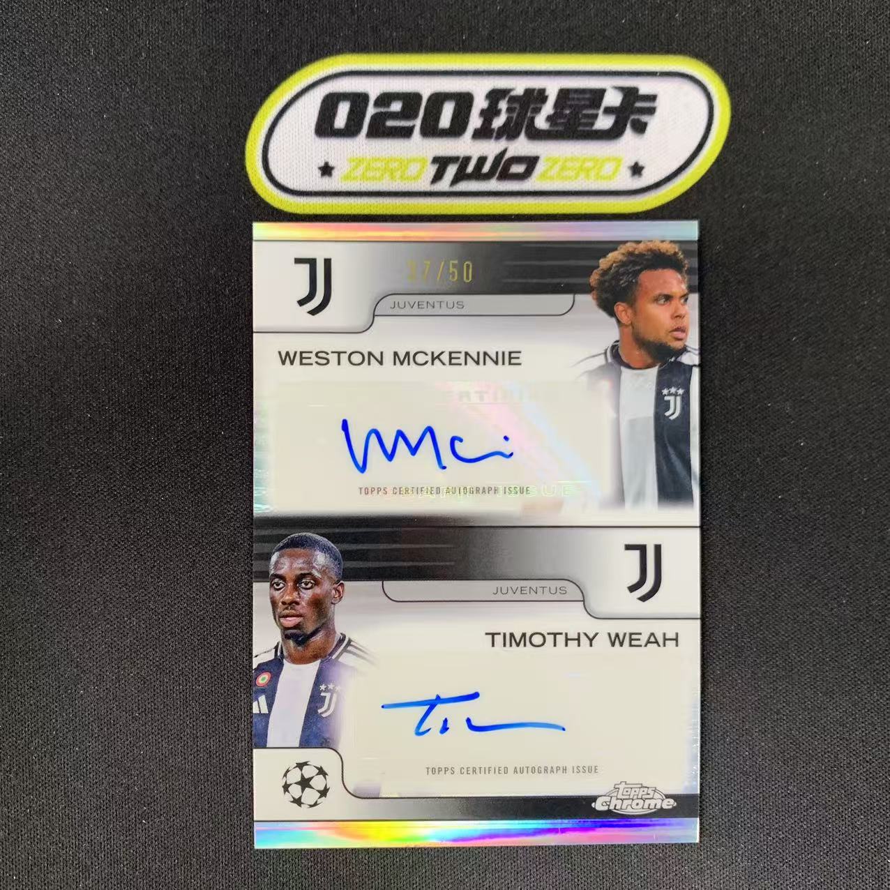 2024-25 Topps Chrome McKennie Timothy Weah 欧冠TC 韦斯顿 麦肯尼 蒂莫西 维阿 双人签字 双签 37/50编 银折 尤文图斯 微瑕如图(LC88)