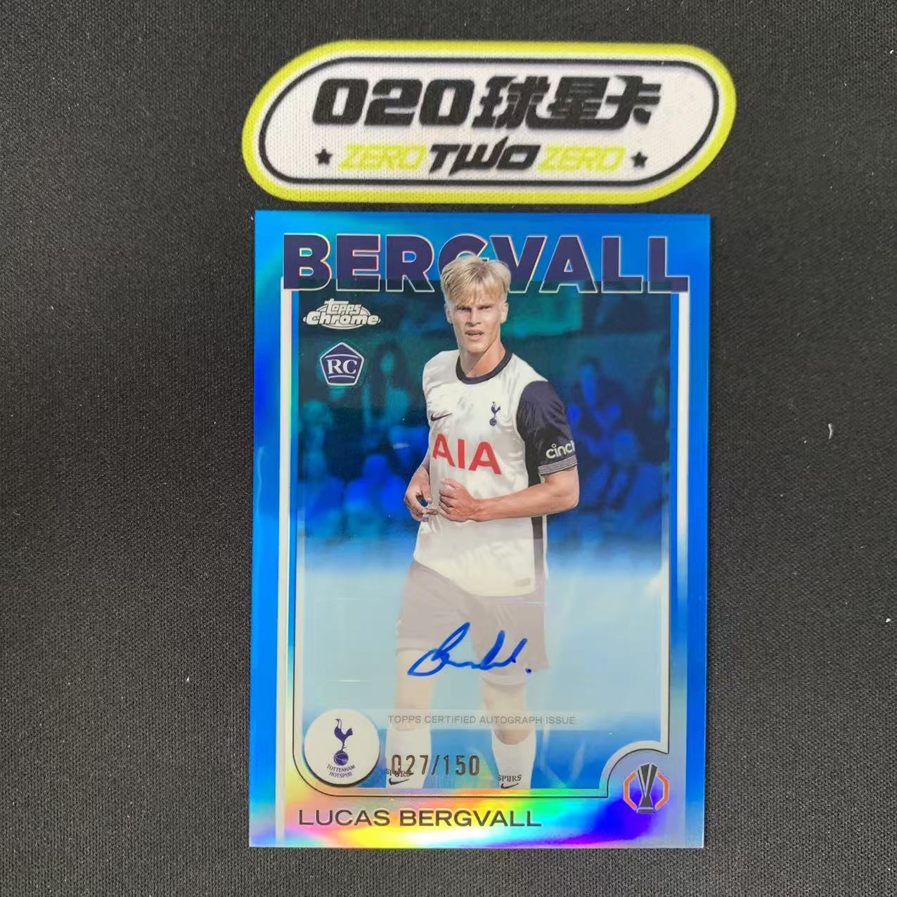 2024-25 Topps Chrome Bergvall 欧冠TC 贝里瓦尔 新秀RC 27/150编 蓝折 签字 未来可期 热刺 微瑕如图(LC88)