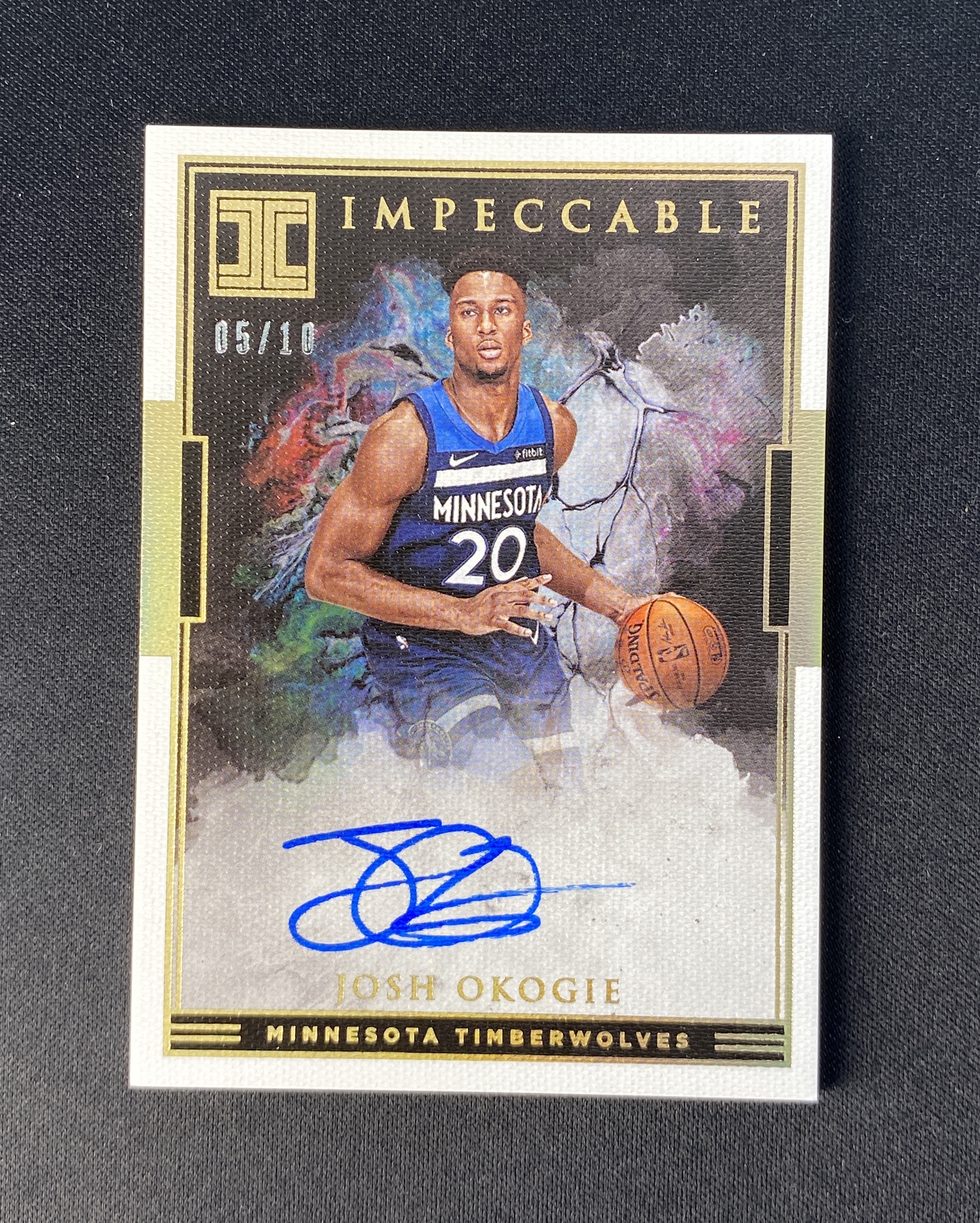 2018-19 Panini Impeccable Josh Okogie RC 约什 奥科吉 森林狼 新秀 10编 金平行 泼墨签 签字 卡签 带卡砖 卡面微瑕见图 专收必备【卡叔代拍】张同学#7