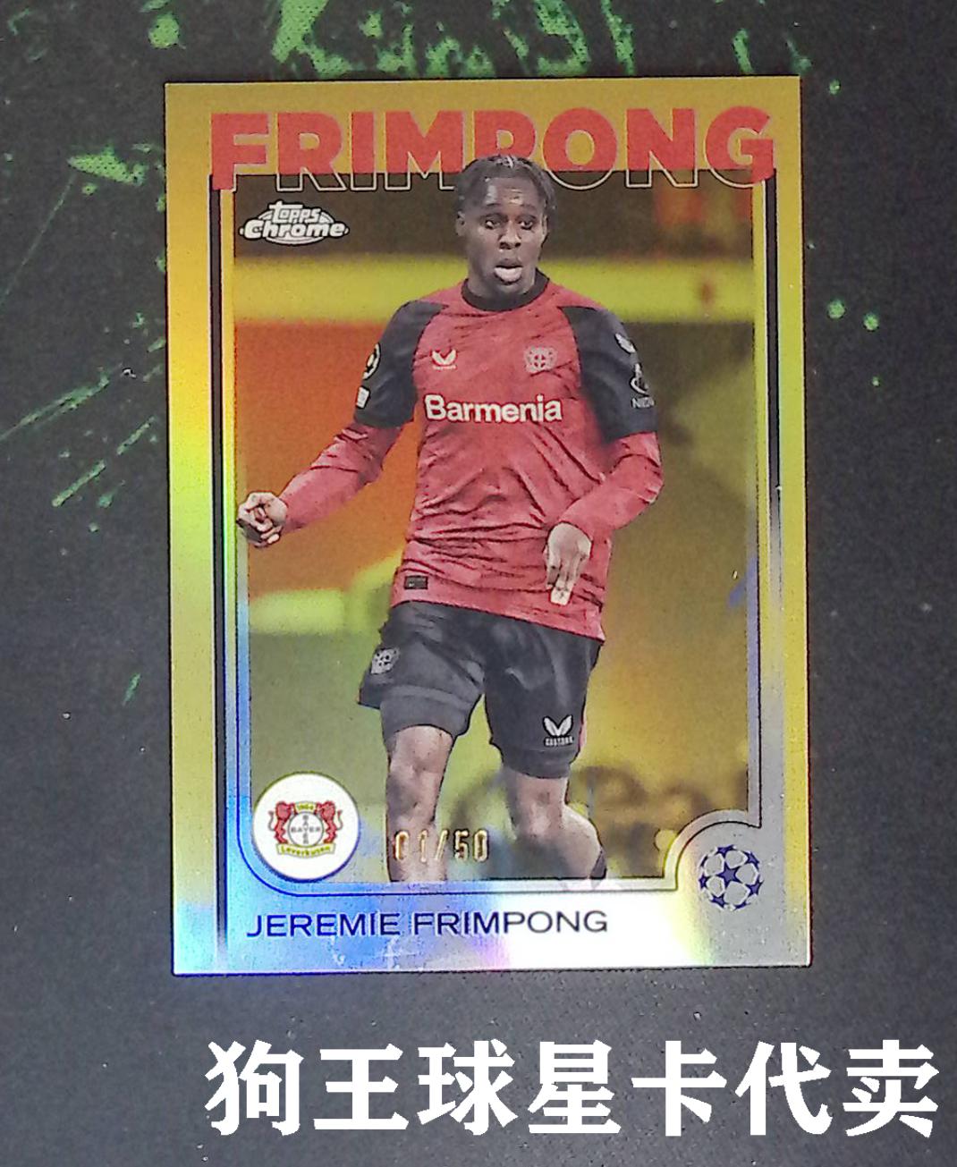 2025 Topps Chrome Jeremie Frimpong 【狗王代卖】TC 欧战 金折 50编 勒沃库森 荷兰 边翼卫 弗林蓬 01/50 首编 投资必备 微瑕见图 黎哥 A51