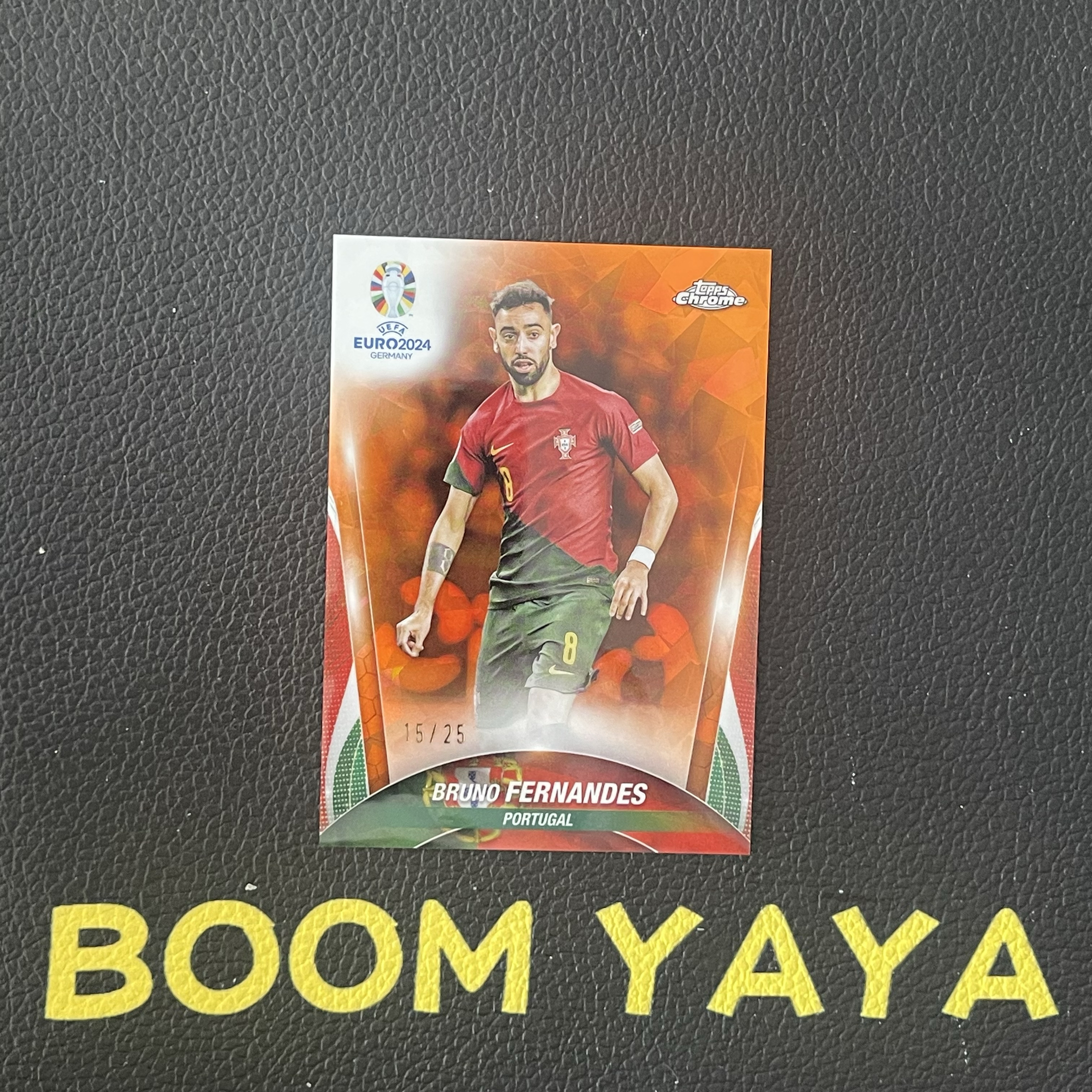 2023-24 Topps Chrome Bruno Fernandes 【BOOM YAYA】TC 蓝宝石 欧洲杯 元年 葡萄牙 布鲁诺 费尔南德斯 B费 15/25编 橙碎冰折 曼联 卡品如图
