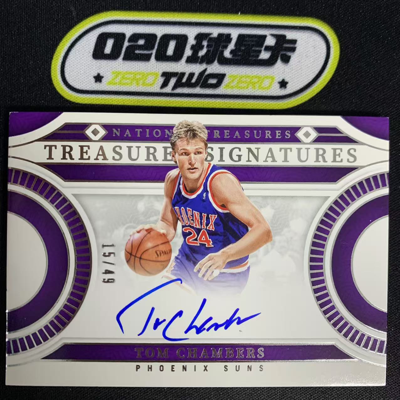 2023-24 Panini National Treasures Tom Chambers 国宝 汤姆 钱伯斯 15/49编 卡签 签字 太阳 银平行 微瑕如图 收藏必备(GZ01)