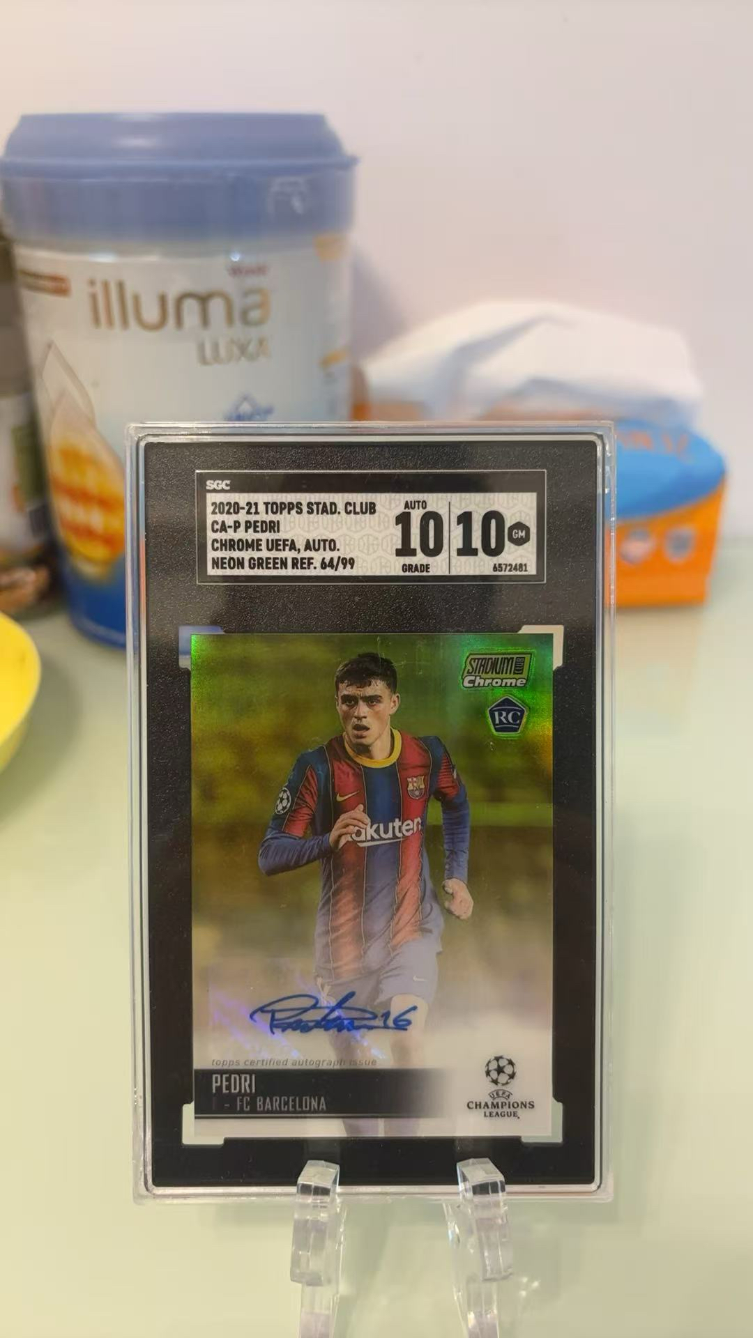 2020-21 Topps Chrome Pedri 佩德里 签字 RC 新秀 64/99编 巴塞罗那 西班牙 欧洲杯冠军 三冠王 金童 竞技场 SGC双10评级 难得好卡