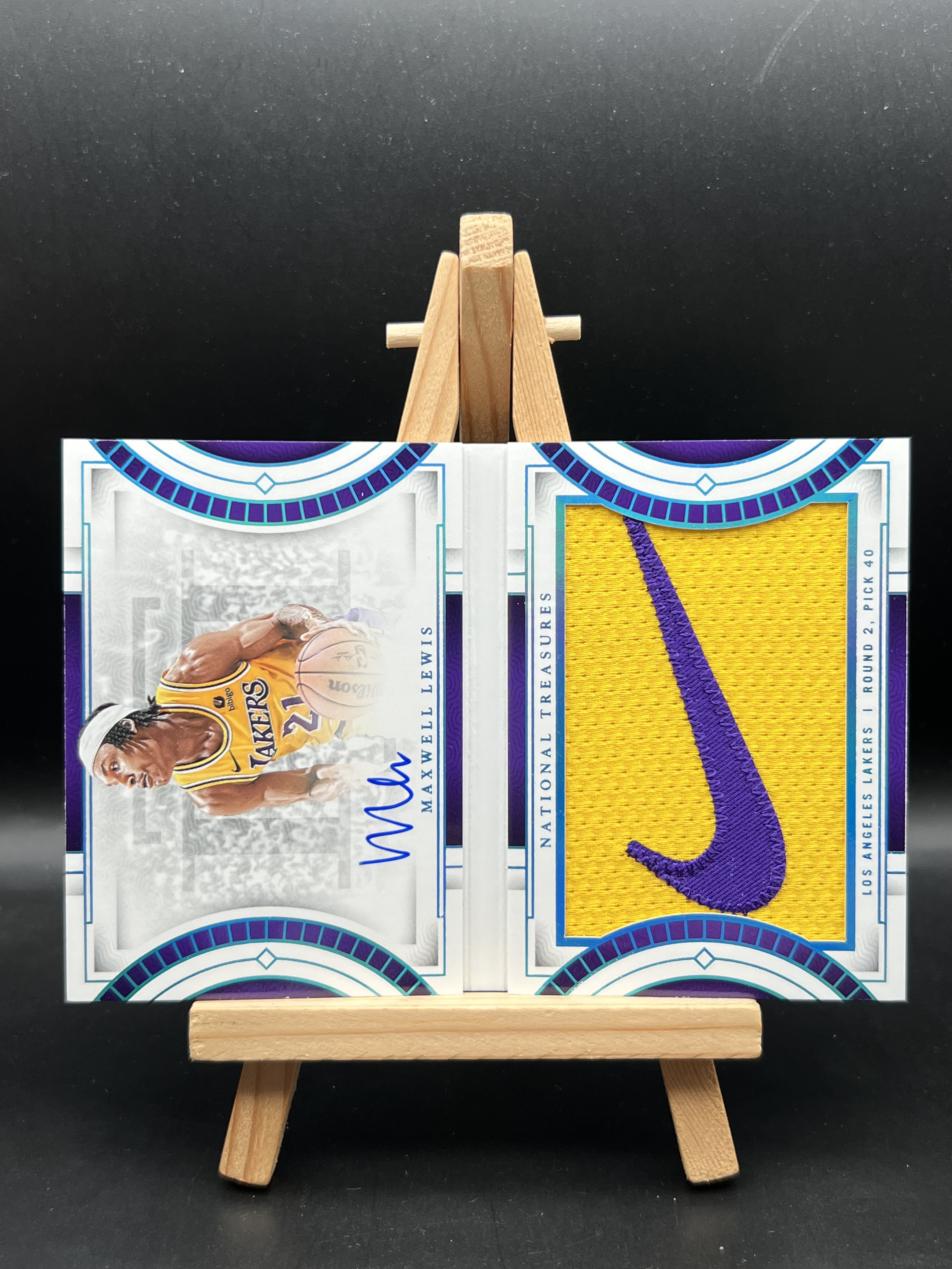 2023-24 Panini National Treasures Maxwell Lewis RC 马克斯维尔 刘易斯 湖人 国宝 RPA 3/3编 湖水蓝 新秀 卡签 签字 NIKE耐克钩子切割