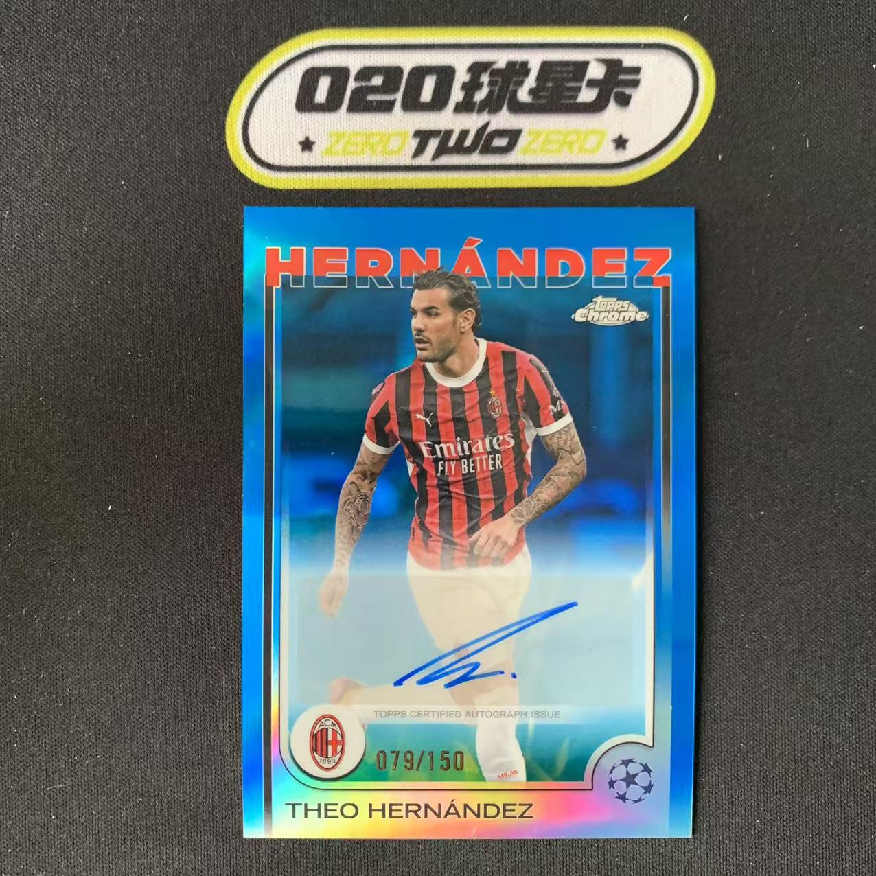 2024-25 Topps Chrome Theo Hernandez 欧冠TC 特奥 埃尔南德斯 79/150编 蓝折 签字 AC米兰 微瑕如图 收藏必备(LC88)