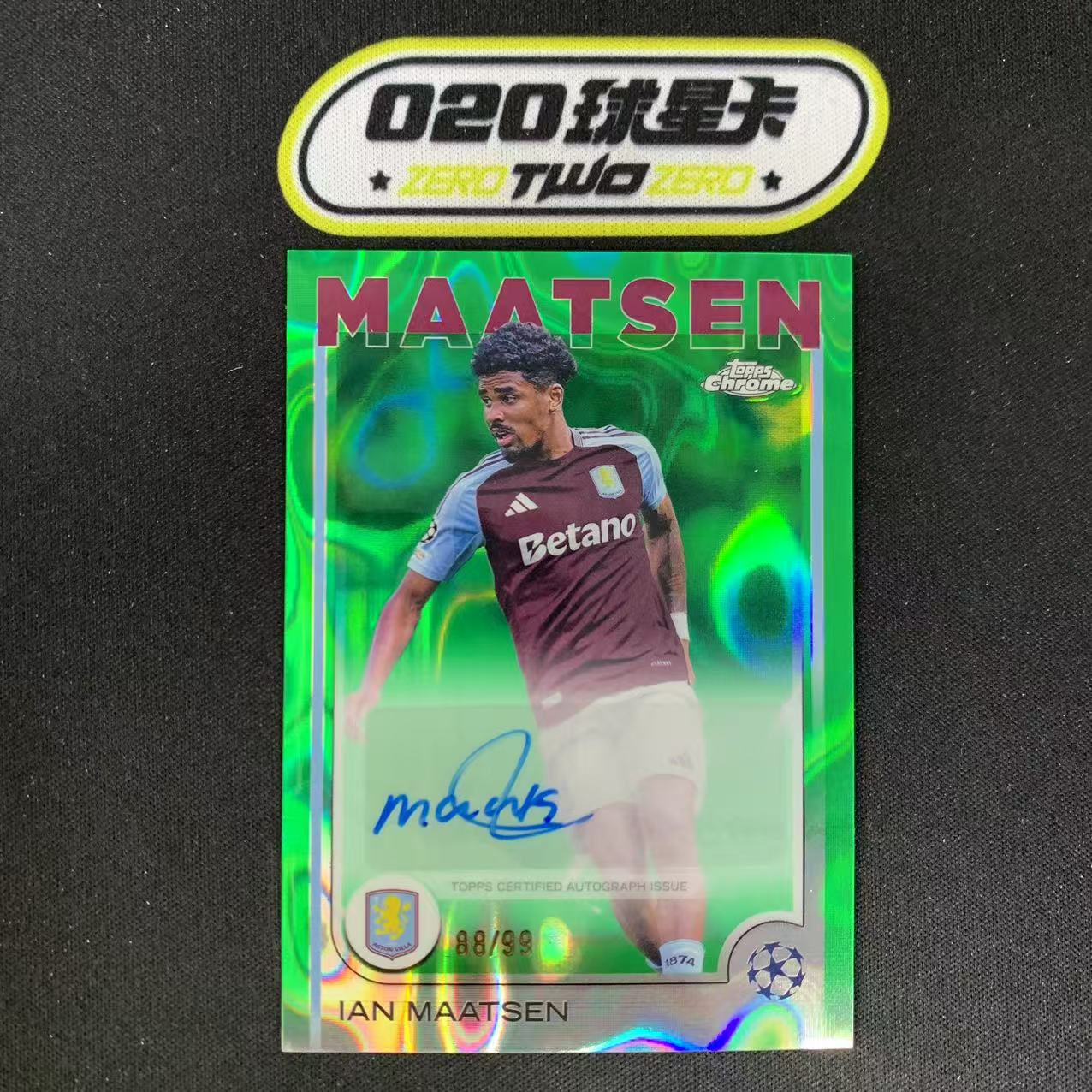 2024-25 Topps Chrome Ian Maatsen 欧冠TC 阿斯顿维拉 伊恩 马特森 88/99编 绿熔岩折 签字 收藏必备(LC88)