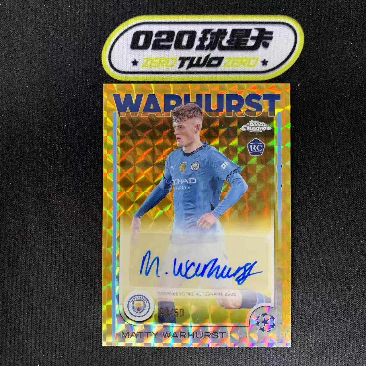 2024-25 Topps Chrome Warhurst 欧冠TC 马特 沃赫斯特 曼城 新秀RC 43/50编 金马赛克折 签字 微瑕如图 投资收藏必备(LC88)