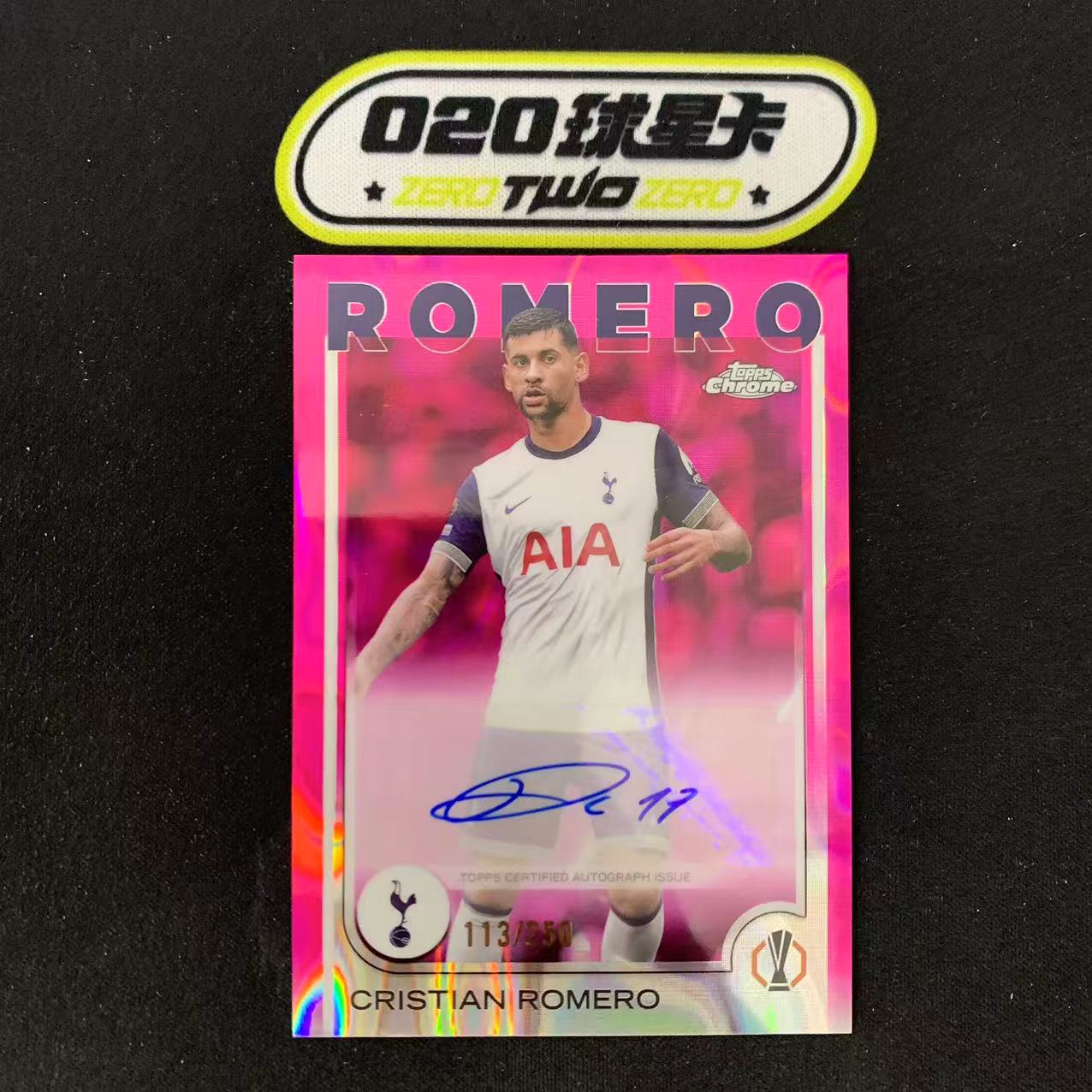 2024-25 Topps Chrome Cristian Romero 欧冠TC 克里斯蒂安 罗梅罗 113/250编 粉熔岩折 签字 热刺 阿根廷 世界杯冠军 微瑕 收藏必备(宝盖头)