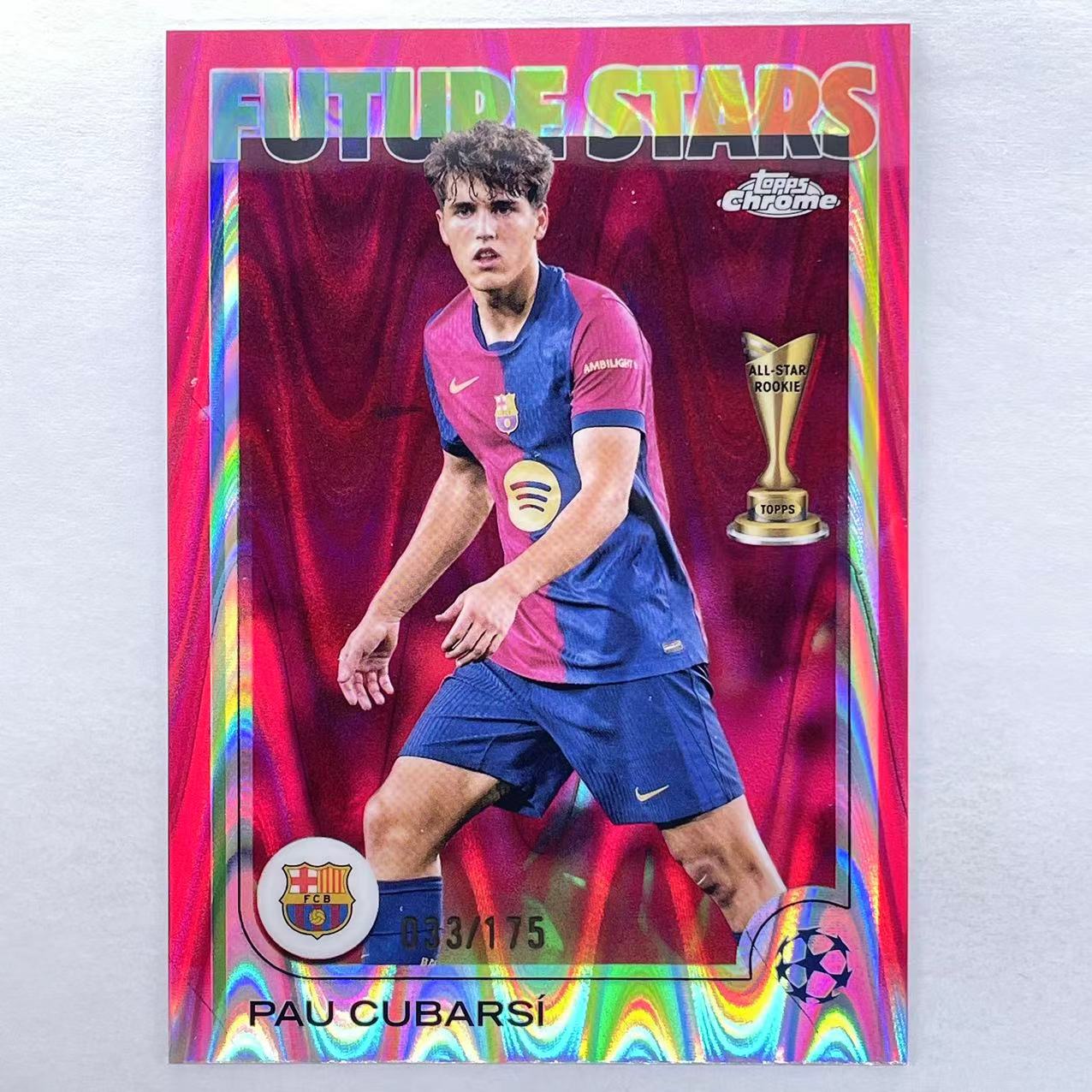 B 2024-25 Topps Chrome Pau Cubarsi 保 库巴西 库巴尔西 175编 霓虹粉波纹折 折射 未来之星 Future Stars 巴萨 巴塞罗那 西班牙 TC 欧战 轻印如图 众孚TWT#