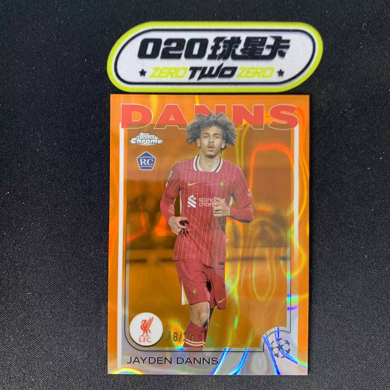 2024-25 Topps Chrome Jayden Danns 欧冠TC 杰登 丹斯 RC新秀 18/25编 橙熔岩折 base 低编 利物浦 未来可期 微瑕如图(果冻)