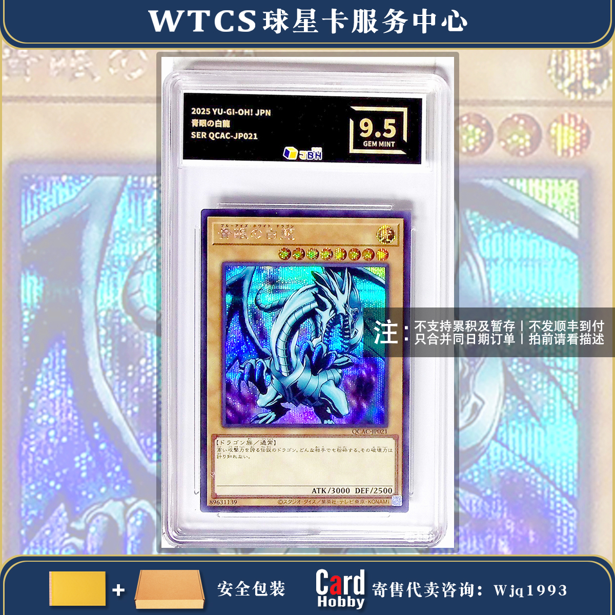 『Wjack拍卖』2025 Yu-Gi-Oh! OCG JPN 游戏王 日文 日版 QCAC 四分之一世纪艺术收藏 青眼白龙 青眼の白龍 SER 银碎闪卡 JBH9.5分评级卡 品相很好 艺术限定标签 MZ89512