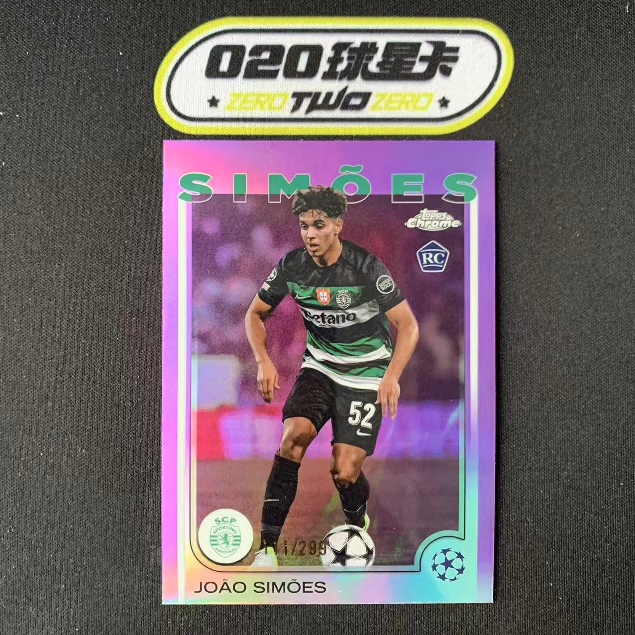 2024-25 Topps Chrome Joao Simoes 欧冠TC 若昂 西蒙斯 新秀RC 111/299编 紫折 葡萄牙体育(GZ01)