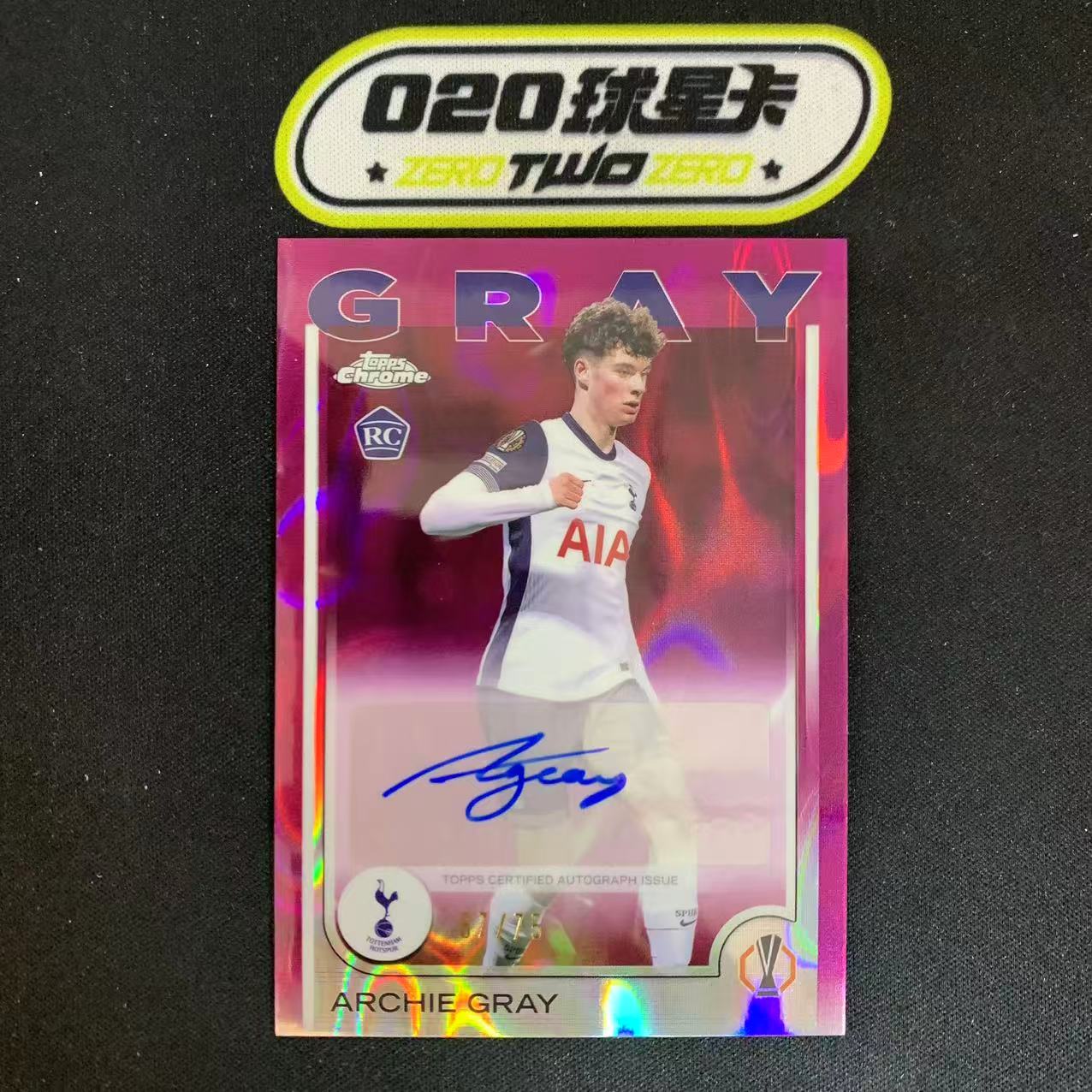 2024-25 Topps Chrome Archie Gray 欧冠TC 热刺 新秀RC 阿奇 格雷 67/75编 品红熔岩折 签字 未来可期(宝盖头)