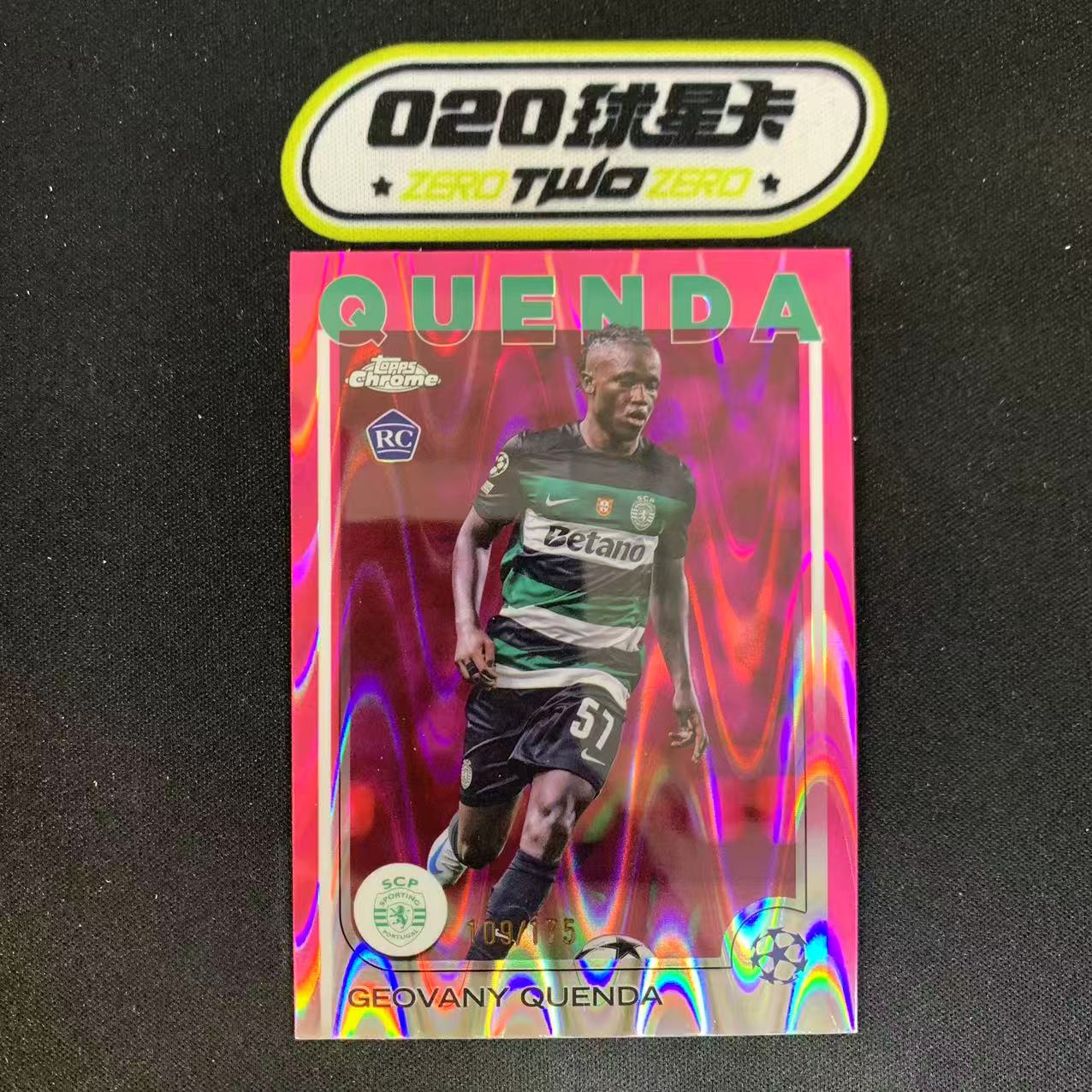 2024-25 Topps Chrome Geovany Quenda 欧冠TC 葡萄牙体育 热奥瓦尼 昆达 RC新秀 109/175编 粉波纹折 微瑕如图(宝盖头)