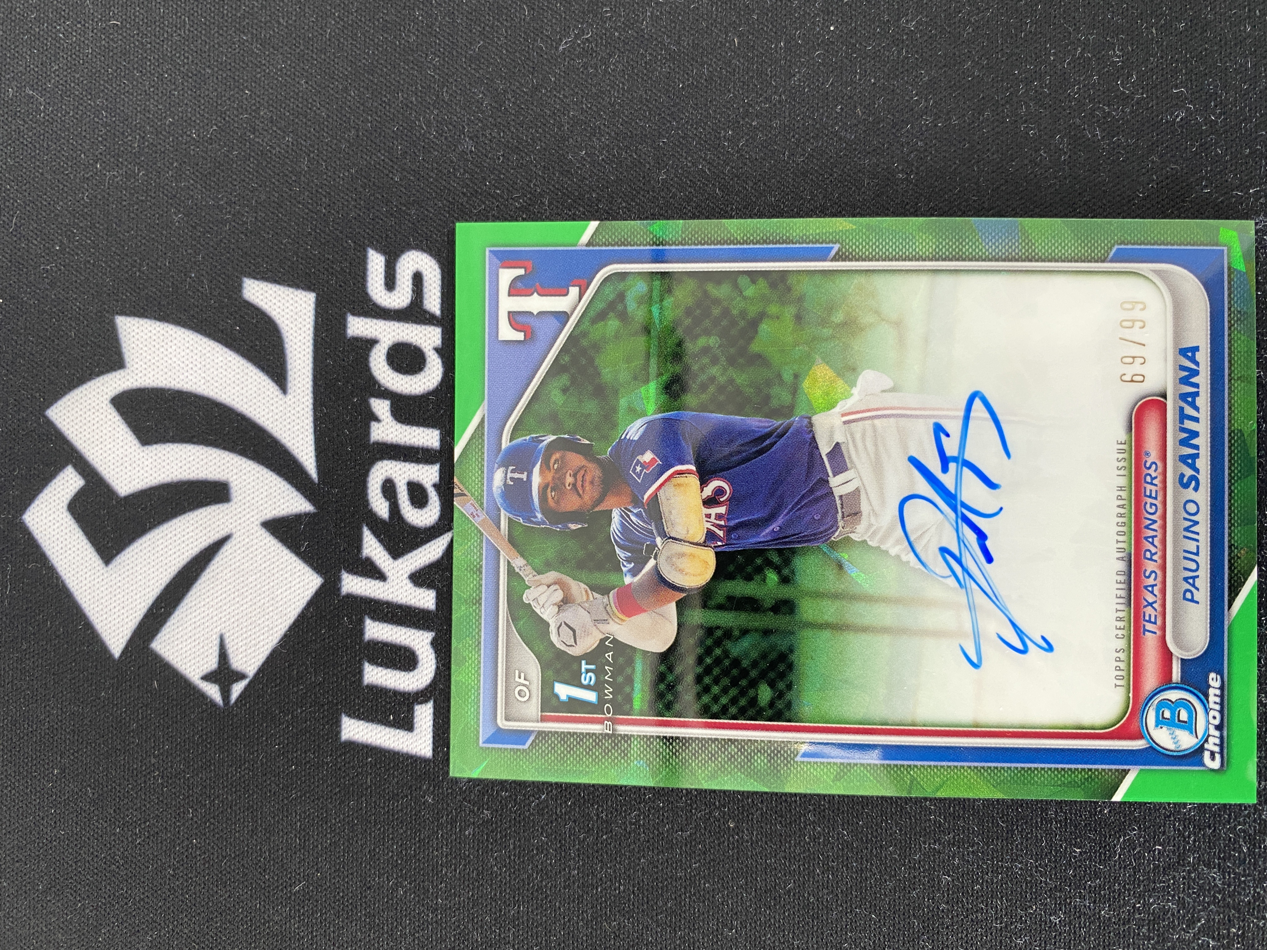 2024 Topps Bowman Chrome Paulino Santana 【禄卡】MLB 蓝宝石 保利诺桑塔纳 1st Prospect 卡签 绿折 99编 德州游骑兵 6.8-ST-Z01