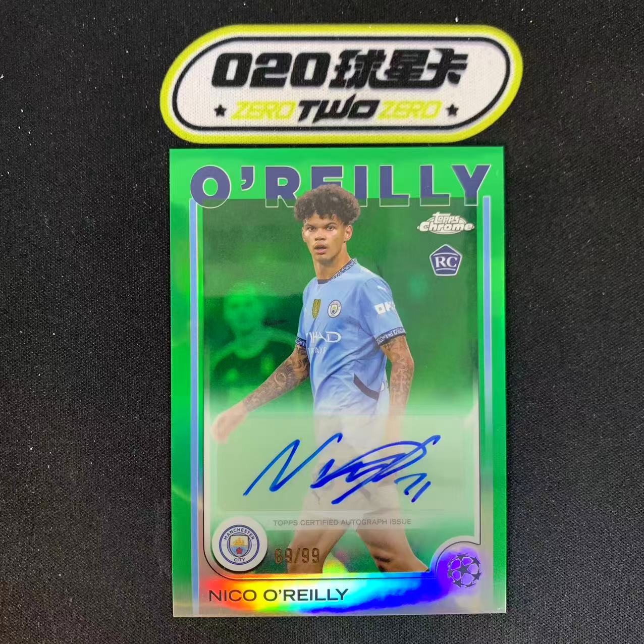 2024-25 Topps Chrome O Reilly 欧冠TC 奥莱利 奥赖利 曼城 新秀RC 69/99编 绿折 签字 未来可期 投资必备(宝盖头)