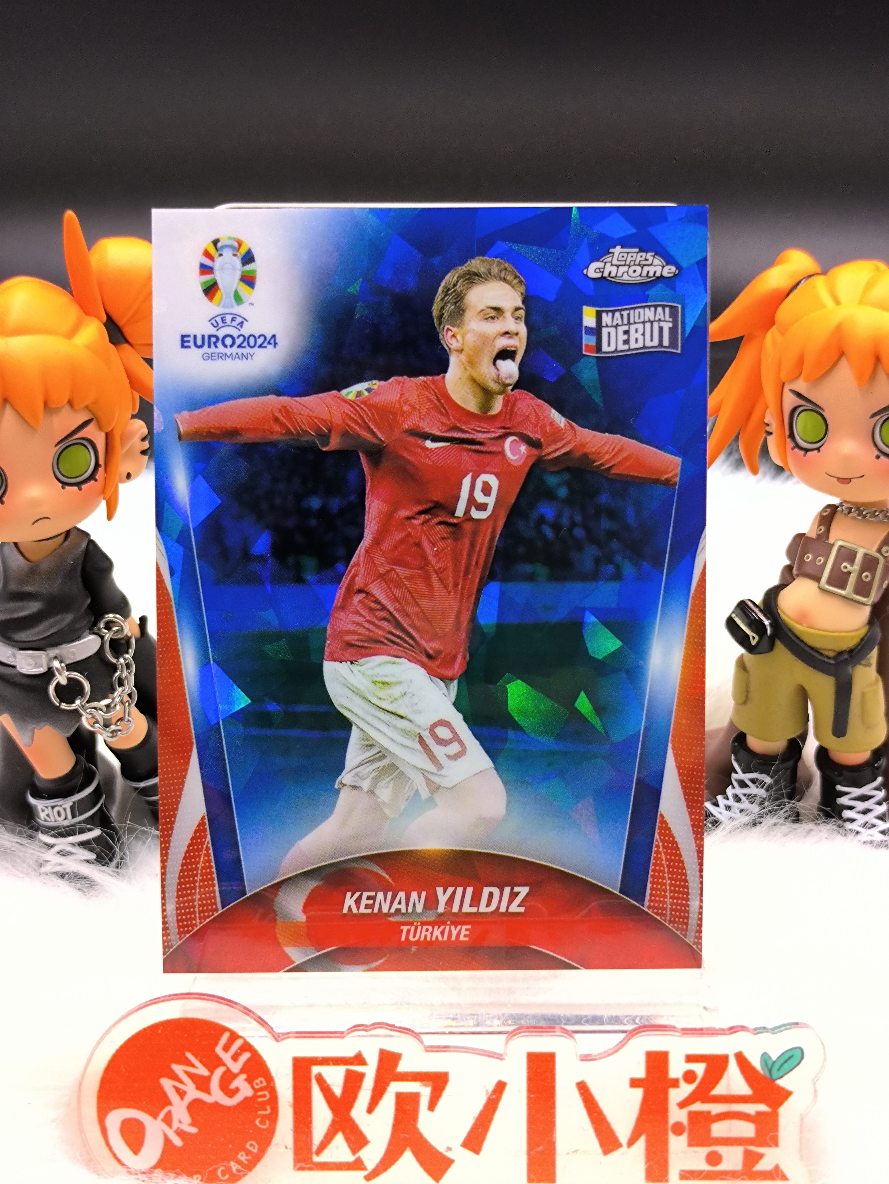 2024 【欧小橙急速拍】 topps chrome kenan yildiz 欧洲杯TC 尤文图斯 土耳其 伊尔迪兹 蓝碎冰折 瑕疵如图 收藏必备煮-SIAR