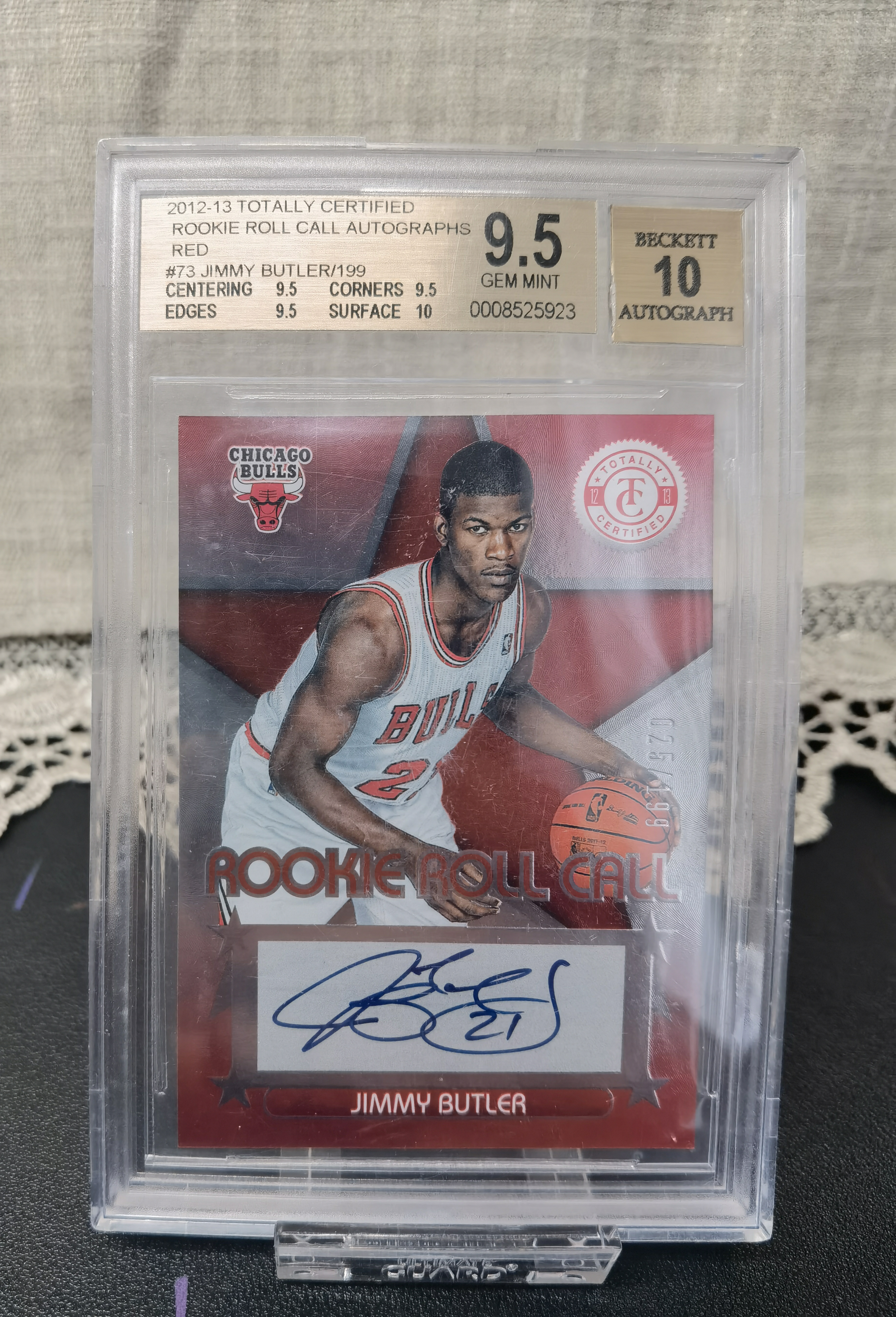 2012-13 Panini Totally Certified Jimmy Butler RC 卫生巾 公牛 吉米 巴特勒 新秀 签字 卡签 025/199编 BGS9.5/10 评级壳损坏如图