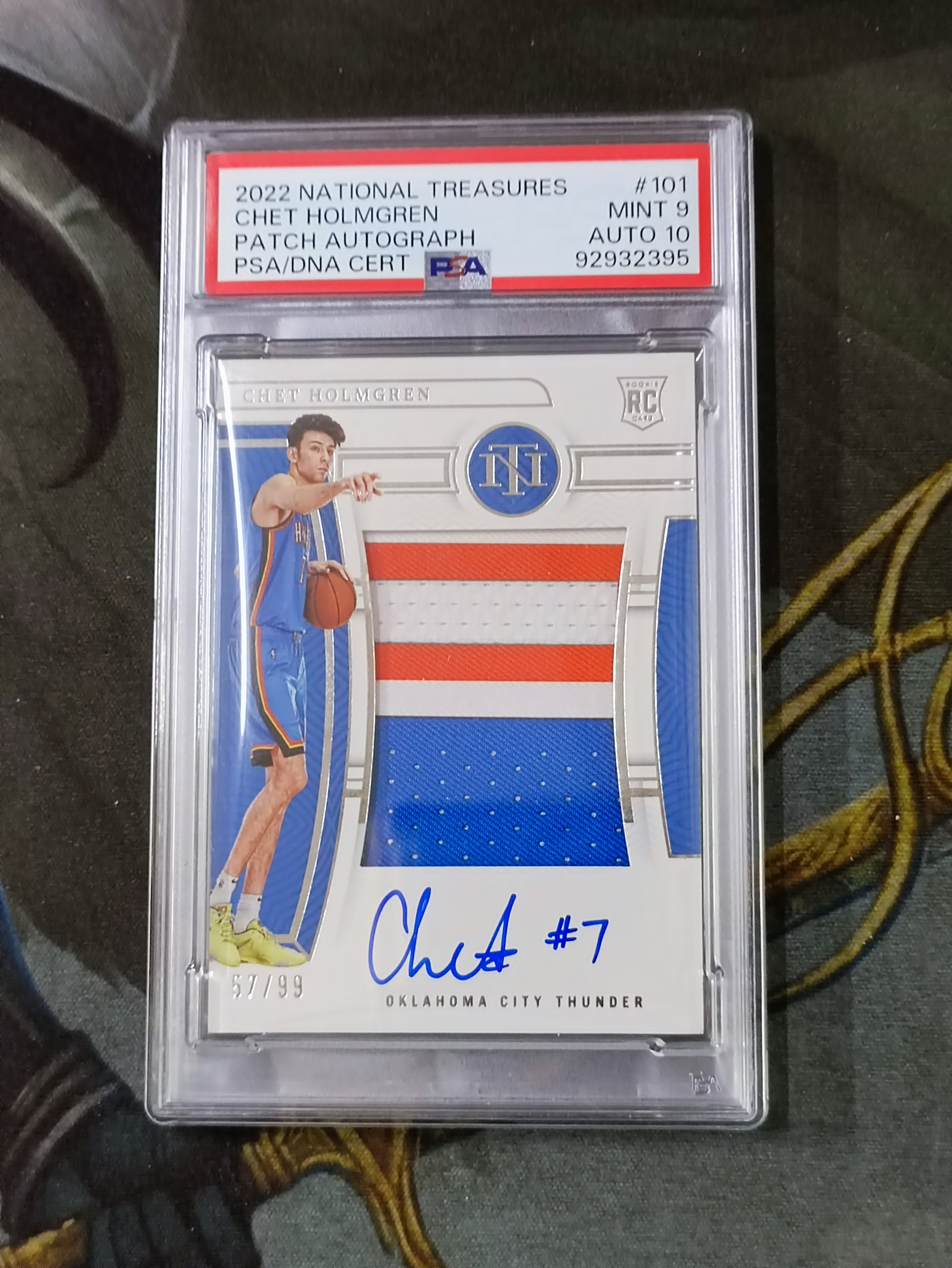 2022-23 Panini National Treasures Chet Holmgren RC 切特霍姆格伦 新秀RPA 限量99编 球衣PATCH卡签 评级卡PSA9/10《苏州卡通》【XH】