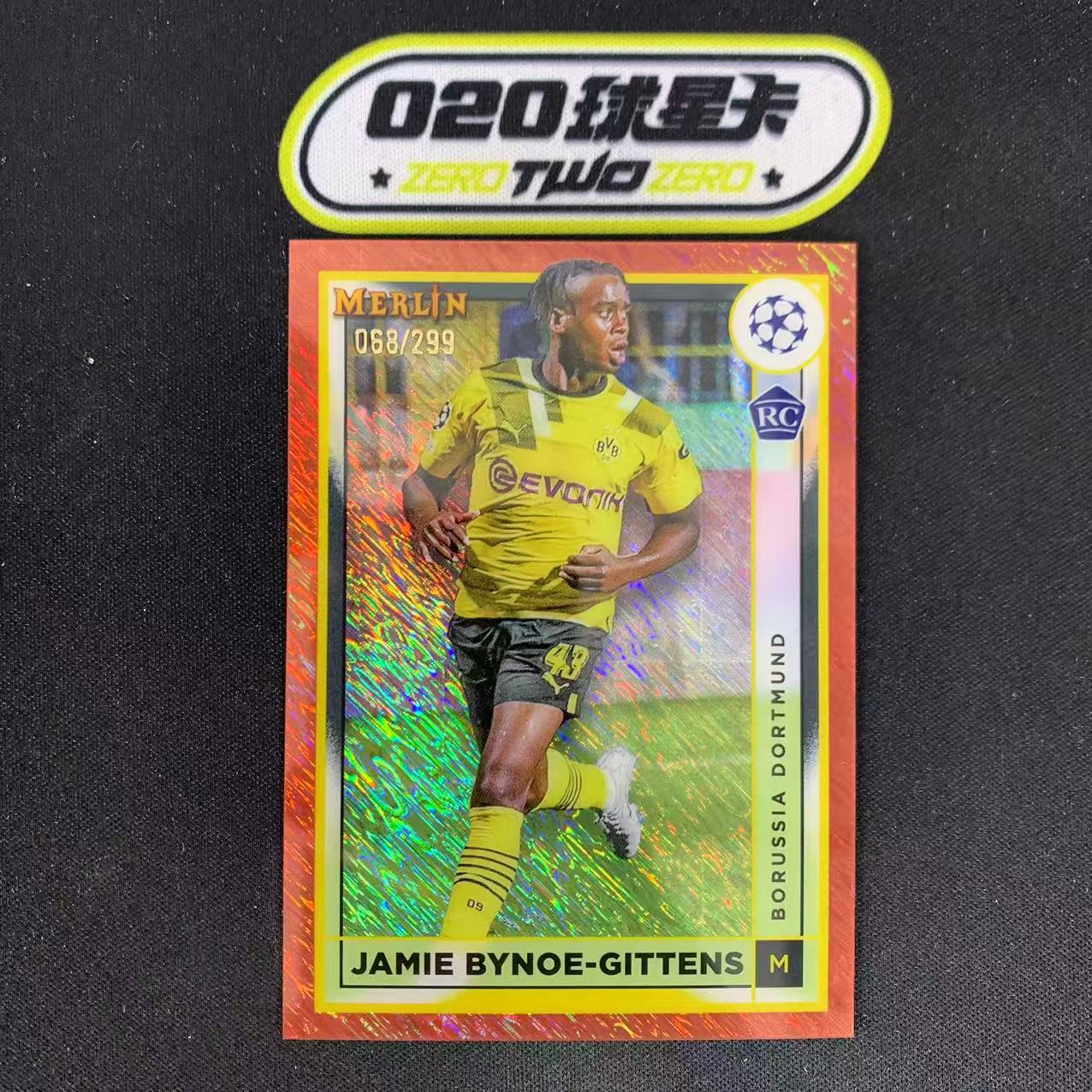 2023-24 Topps Merlin chrome Jamie Bynoe-Gittens 欧冠 吉滕斯 吉腾斯 RC新秀 68/299编 褐shimmer折 多特蒙德 微瑕如图(橙成)
