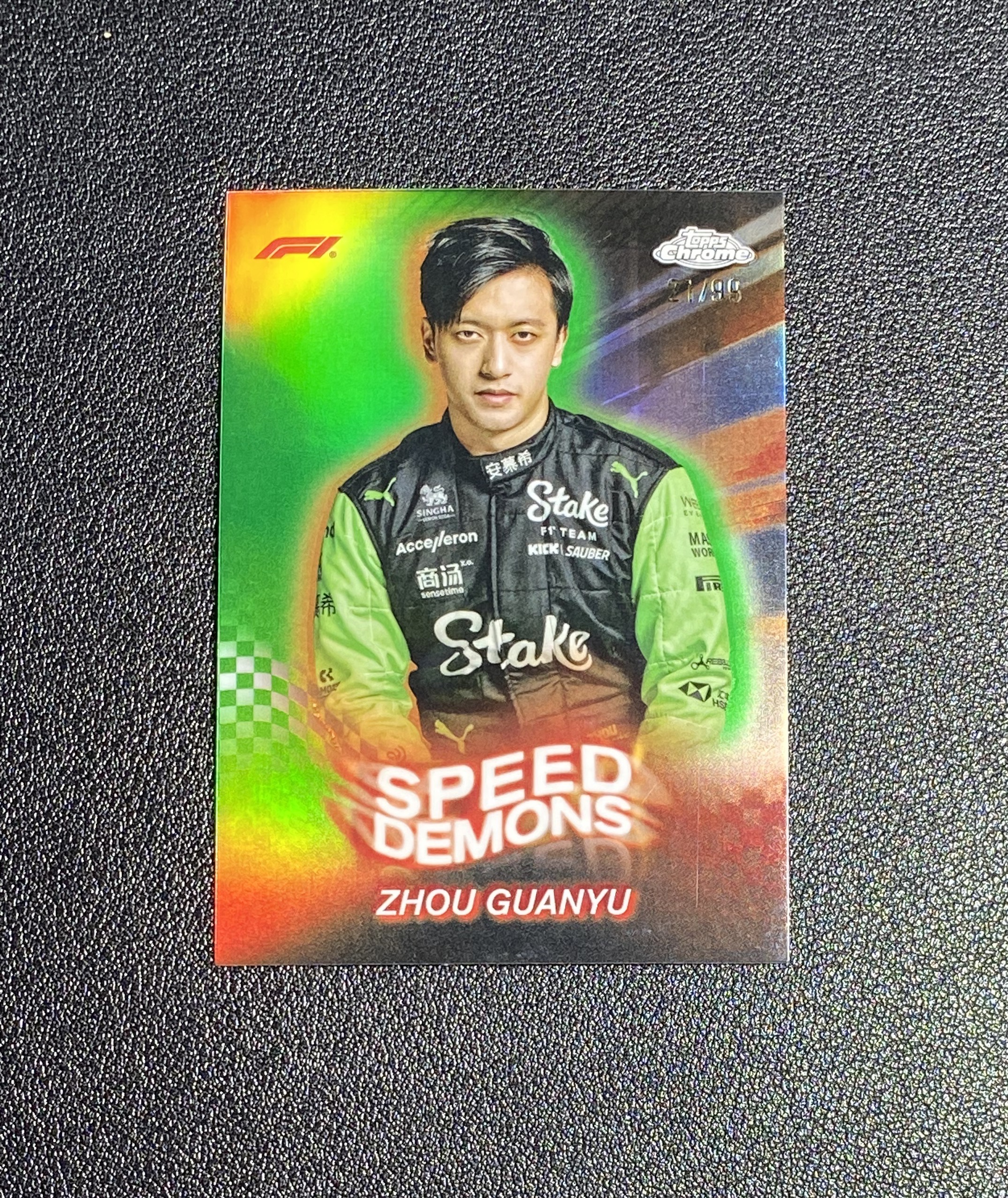【一支鼎】2024 Topps Chrome F1 Zhou Guanyu 索伯车队 周冠宇 99编 Speed Demons 特卡 绿折 瑕疵如图【YB】