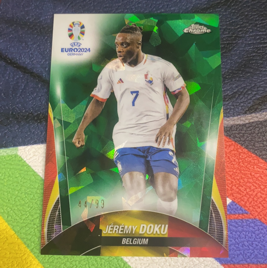 2024 Topps Chrome Jérémy Doku 多库 比利时 曼城 欧洲杯 绿碎冰 99编 收藏必备 卡品如图(航