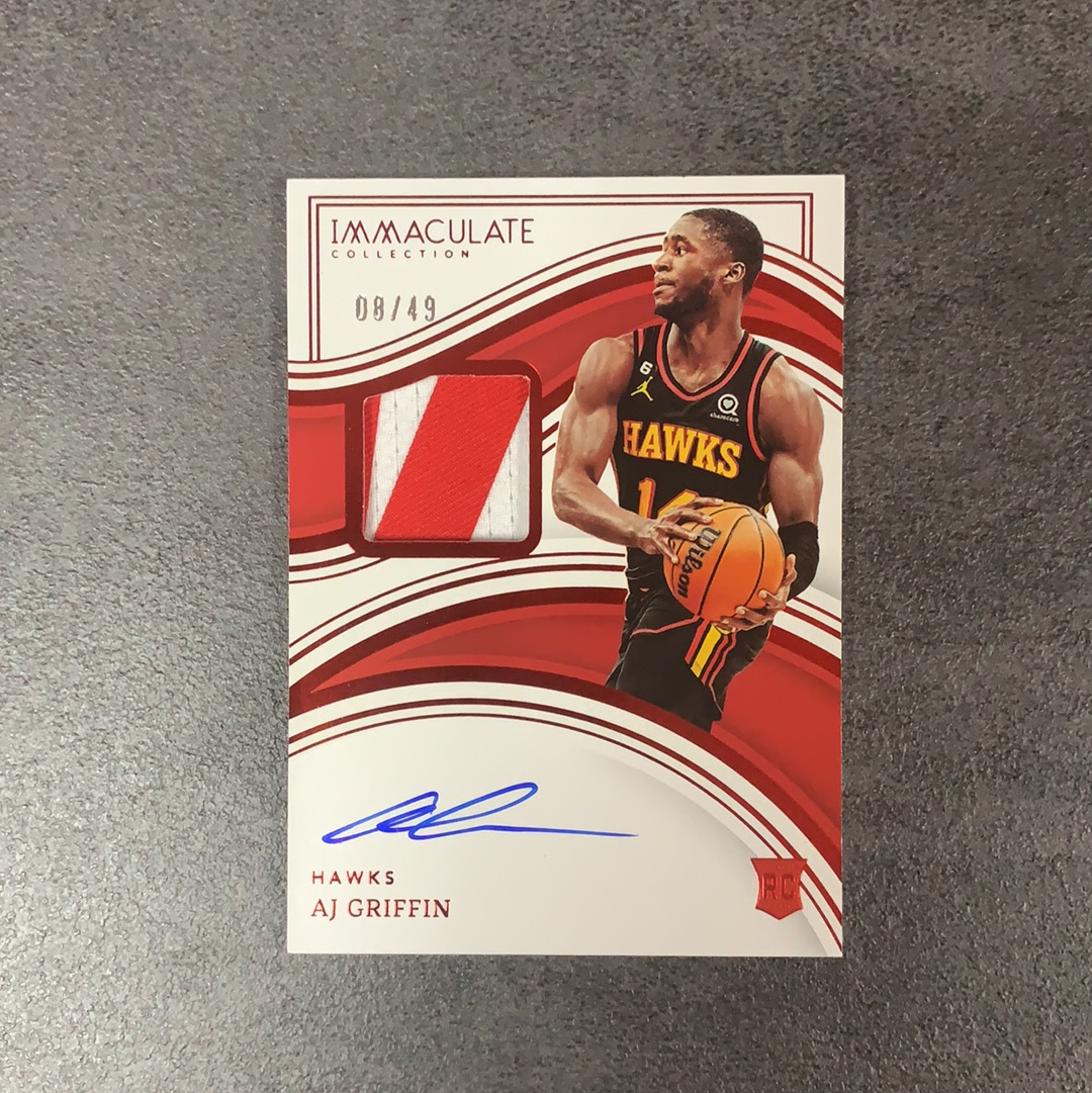 【大嘴拍卖】2022-23 PANINI IMMACULATE AJ GRIFFIN AJ格里芬 08/49编 RPATCH 新秀球衣签字 卡签 红折签 双色暴力切割 老鹰 新秀 RC 篮球