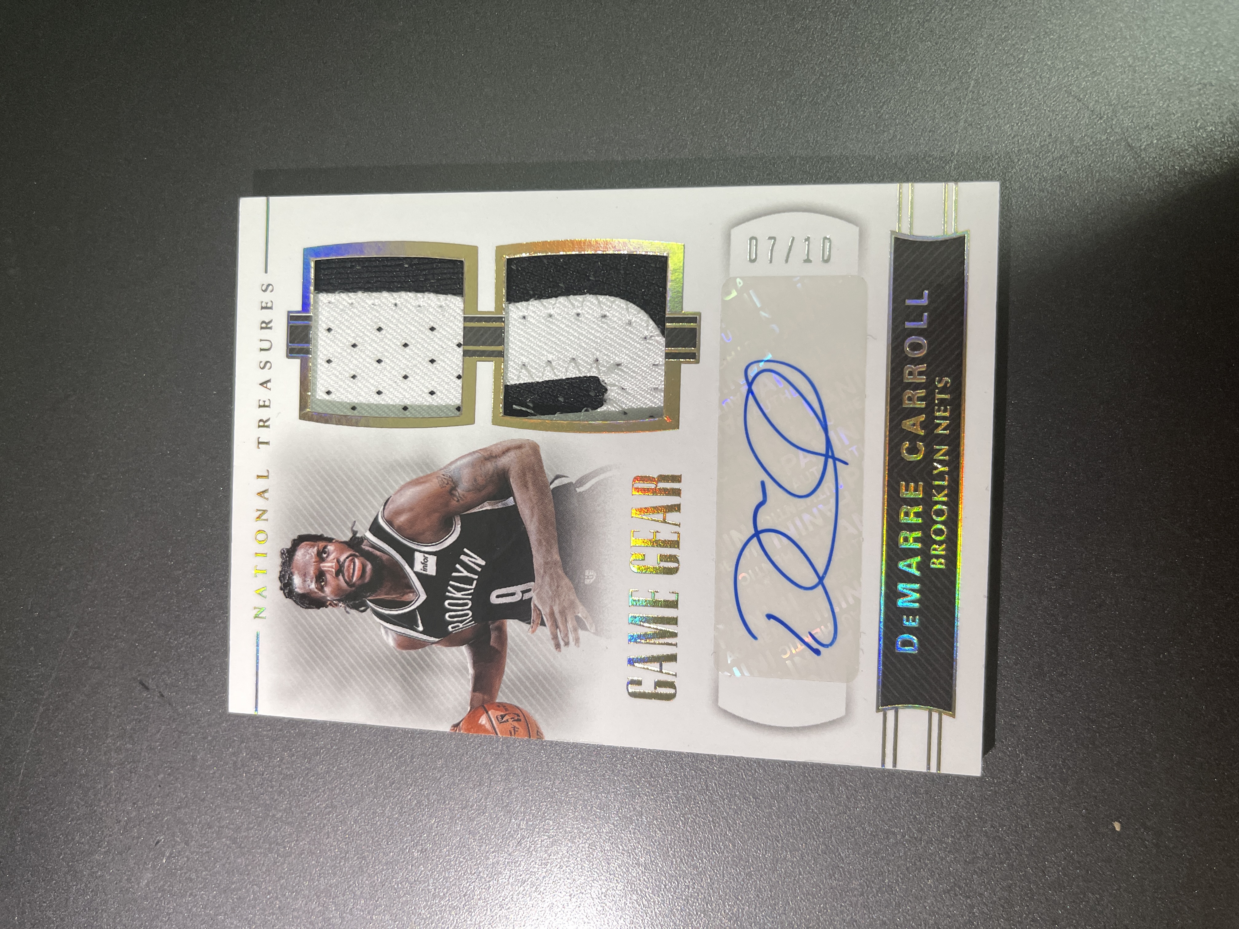 2017-18 Panini National Treasures DeMarre Carroll 德马雷卡罗尔 国宝 签字 球衣 PA 金折 限量10编 背后微瑕 0手续费接代拍 尼尼.