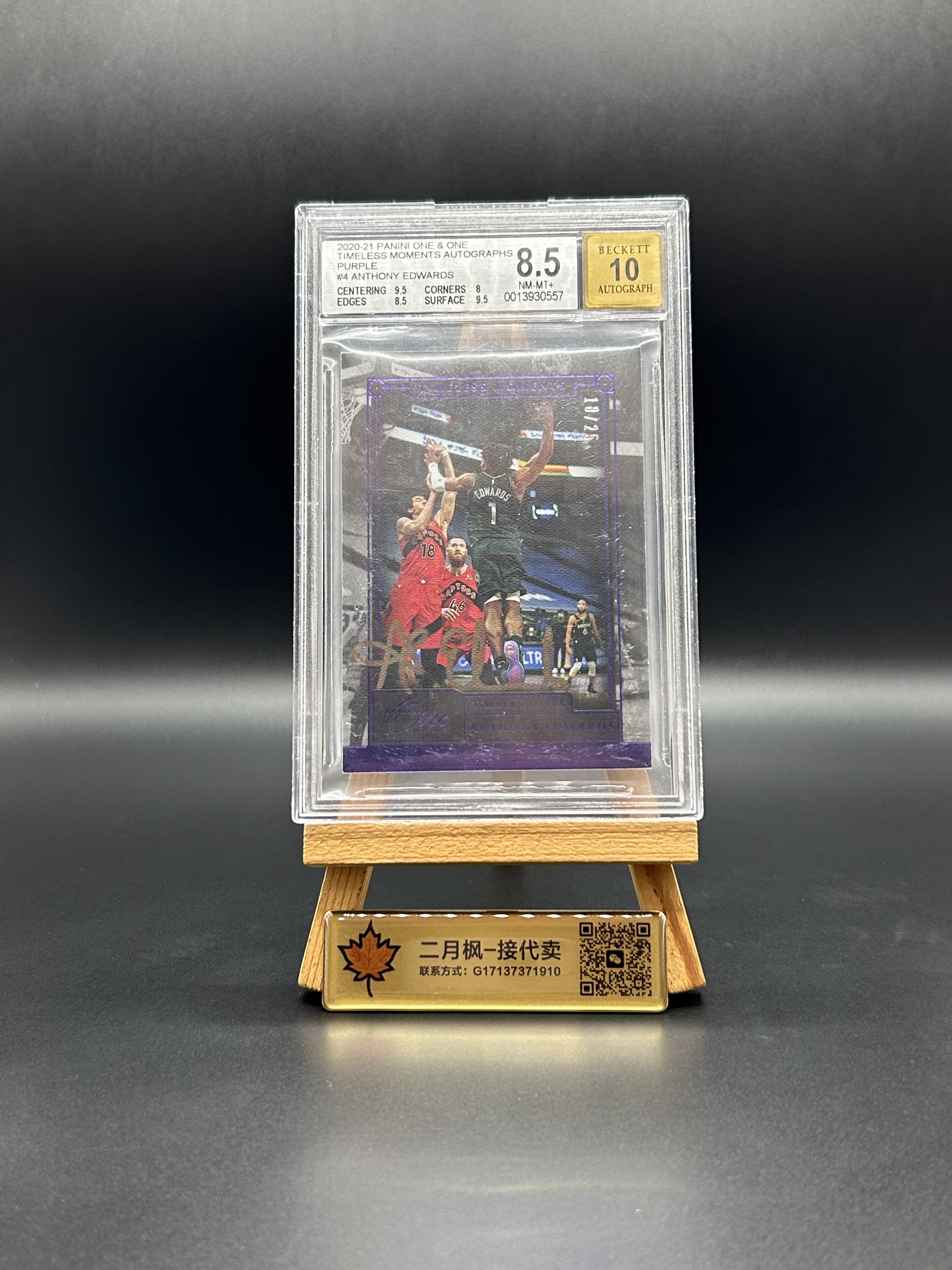 【二月枫-承接代卖】2020-21 帕尼尼 One and One 森林狼 安东尼 爱德华兹 新秀RC 签字 Moments 时刻签 紫版 金笔卡签 25编 低编 BGS8.5/10分评级 #JAY