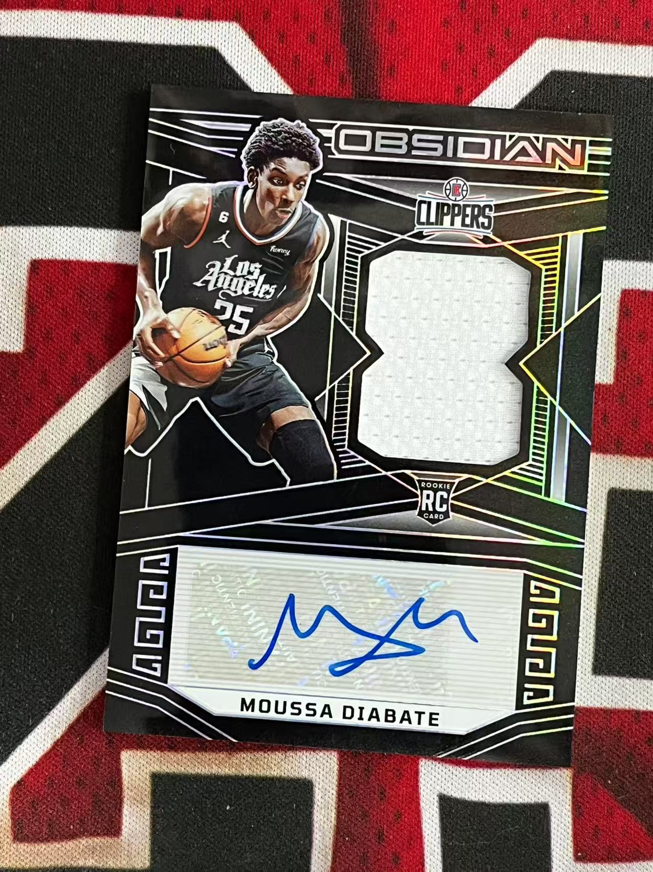【接寄拍费率低至5%含卡淘手续费】2022-23 PANINI OBSIDIAN 黑曜石系列 快船 新秀RC 穆萨迪亚巴特 99编 RJA 新秀球衣物料切割签字卡 银折 折射【烂臭嘴拍卖】