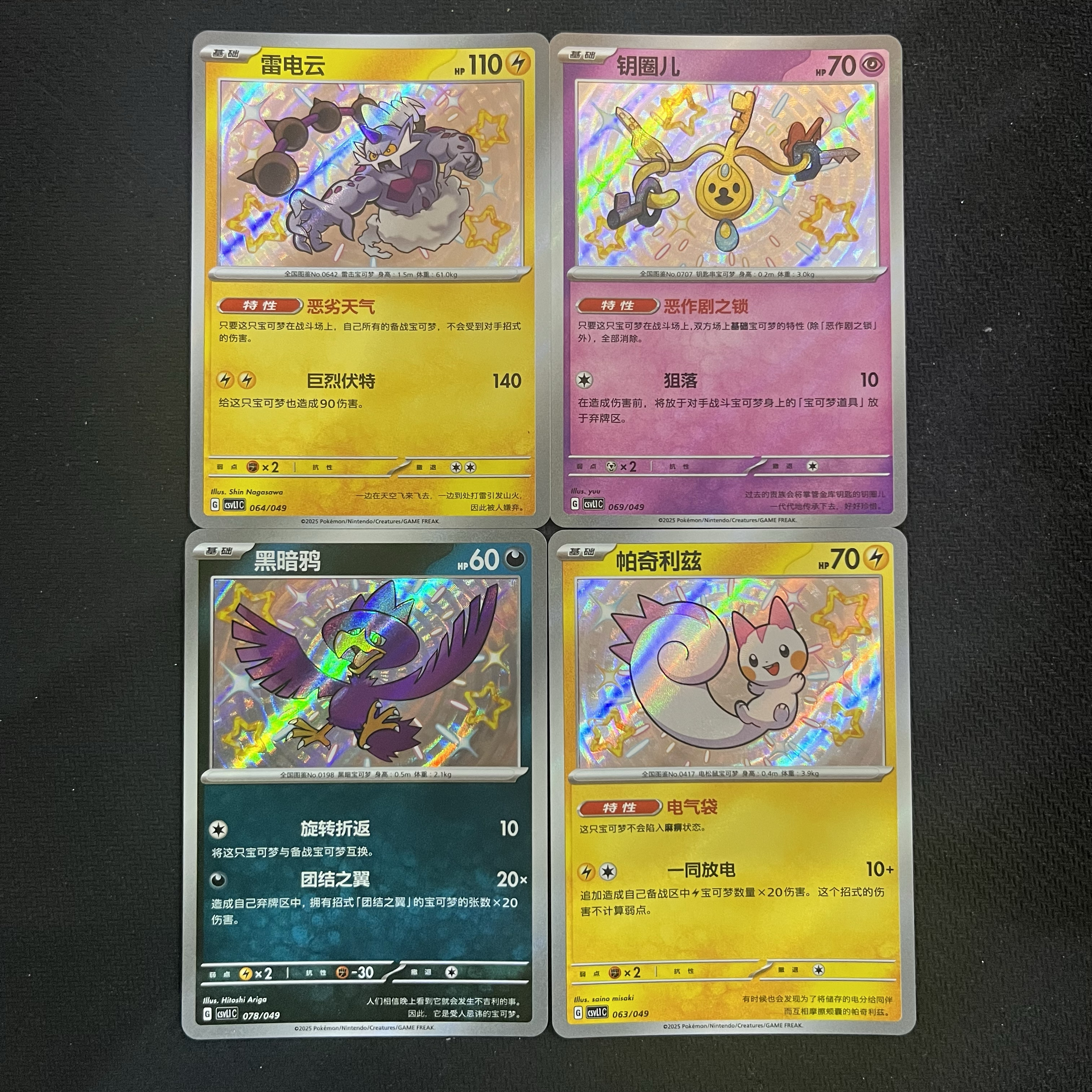 2025 Pokemon TCG 启程专题包 简中 chs csvL1C 黑暗鸦 雷电云 钥圈儿 帕奇利兹 S闪 4张打包 卡品如图 收藏必备(超玩代卖 墨)