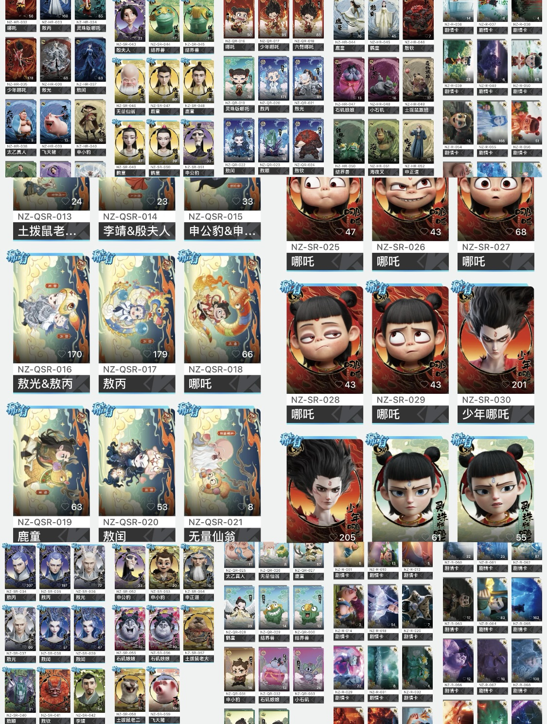 卡游 哪吒 斗天包第2弹 小全套128张,QSR卡12张,SR卡35张,QR卡20张 ,HR卡21张,R卡40张,卡机直发