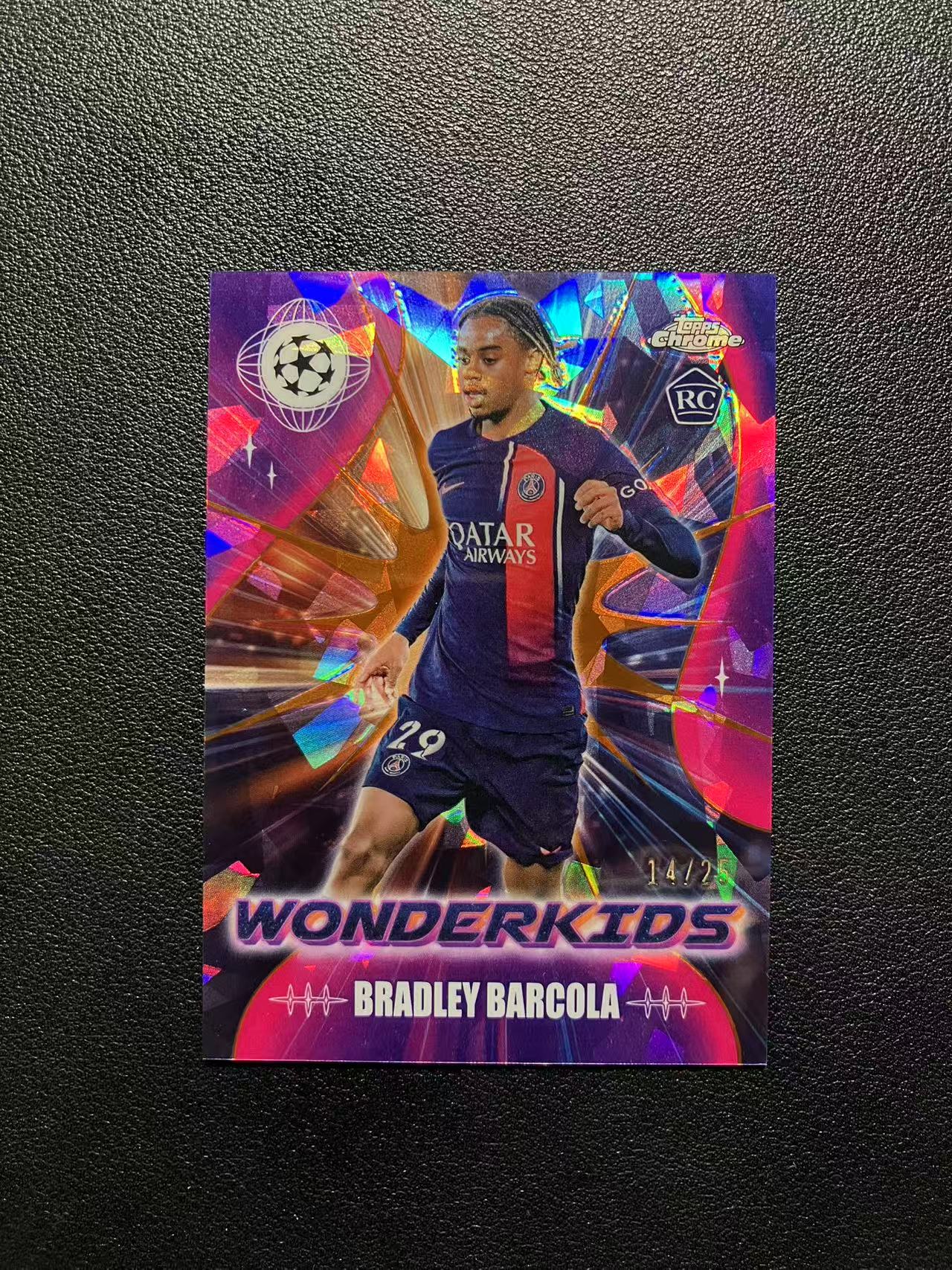2024 Topps Chrome Bradley Barcola 欧冠蓝宝石系列 巴尔科拉 14/25编 橙碎冰折 神奇小妖特卡 RC新秀 大巴黎 法国 欧冠冠军 边锋 卡品如图 B204