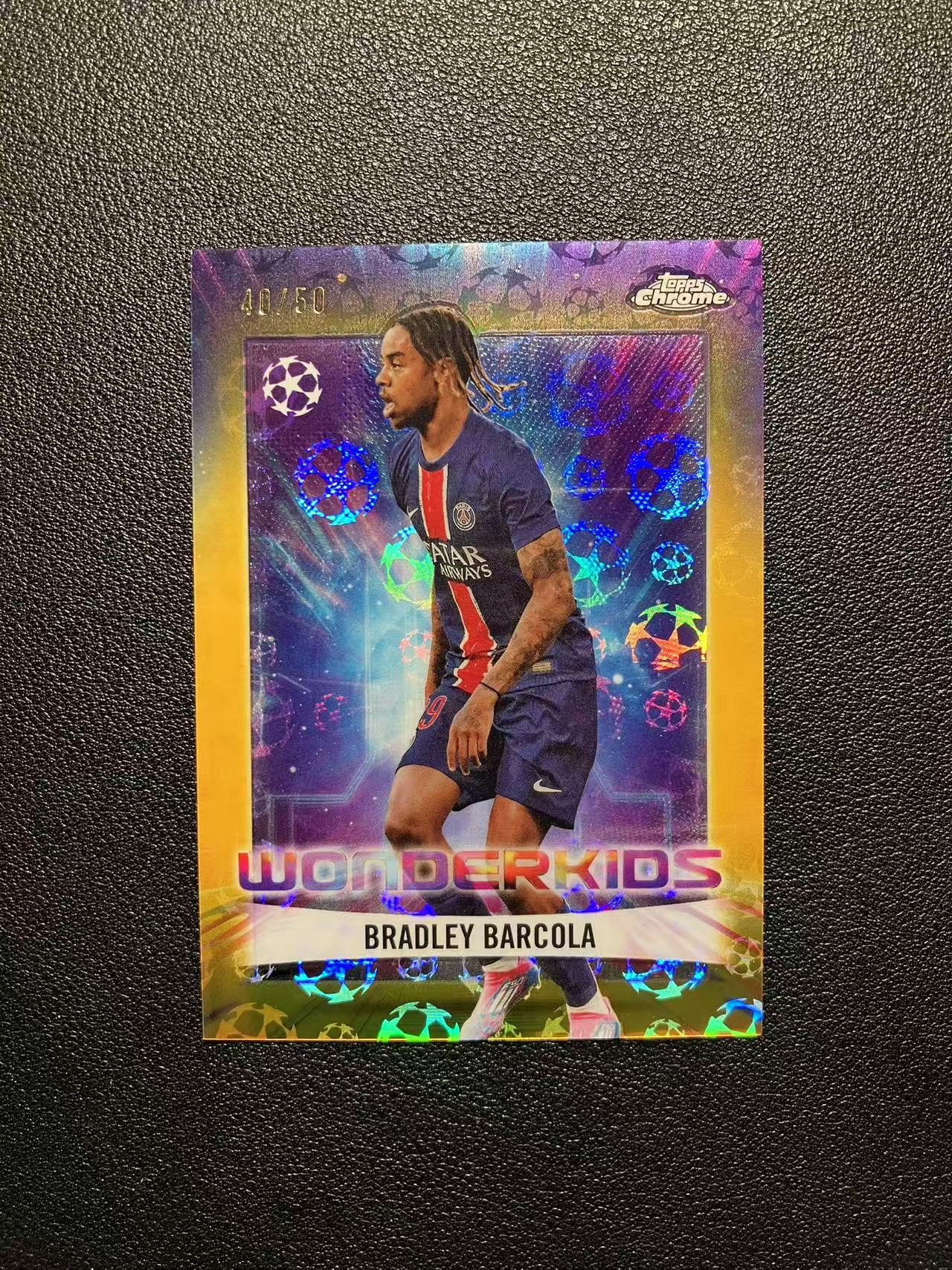 2025 Topps Chrome Bradley Barcola 欧冠TC系列 巴尔科拉 40/50编 金球折 神奇小妖特卡 logo球折 大巴黎 法国 欧冠冠军 伦敦限定 卡品如图 B019